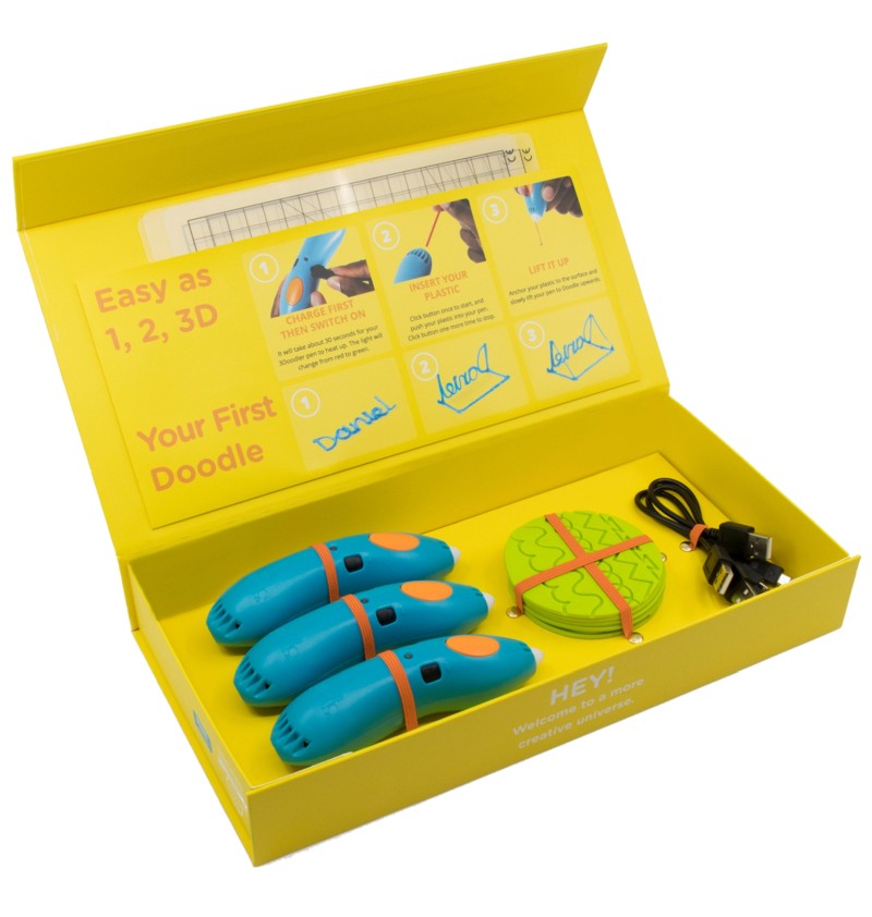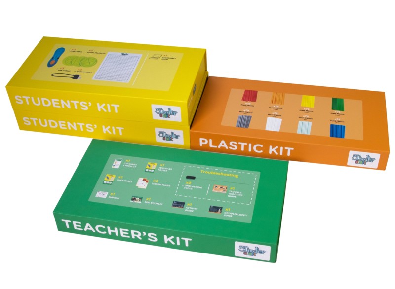 Každá ze dvou studentských sad obsahuje: 3 3D pera 3Doodler Start+, 3 kabely USB typu C, 6 šablon DoodleBlock a 3 podložky DoodlePad . To umožňuje studentům vytvářet 3D projekty, rozvíjet jejich manuální dovednosti a kreativitu a učit se týmové práci, plánování a přesnosti.