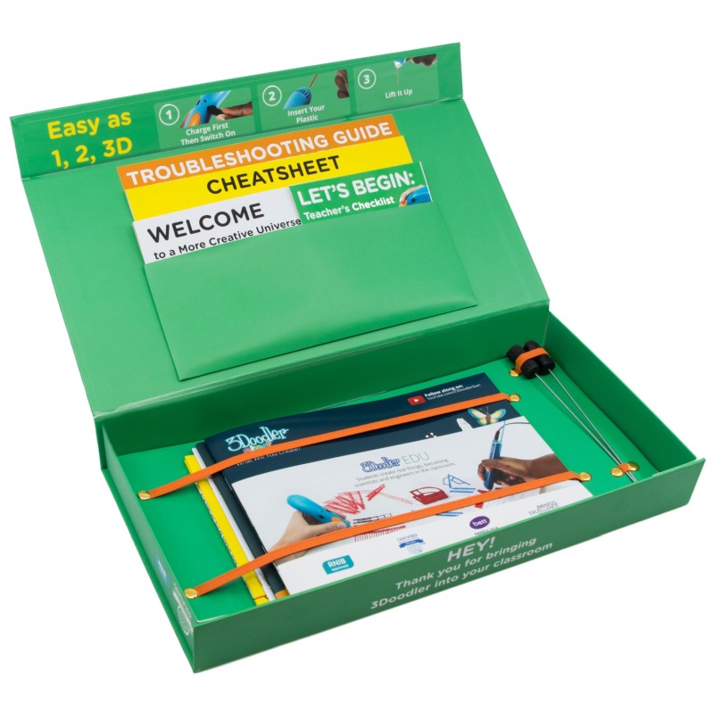 Sada pro učitele, která je součástí výukového balíčku 3Doodler EDU Start+, poskytuje všechny potřebné materiály pro efektivní výuku. Obsahuje kontrolní seznam, průvodce lekcemi, brožuru EDU, průvodce DoodleBlock, pokyny a podpůrné materiály – připravené k okamžité implementaci. To učitelům dává čas a nástroj pro kreativní zapojení studentů.