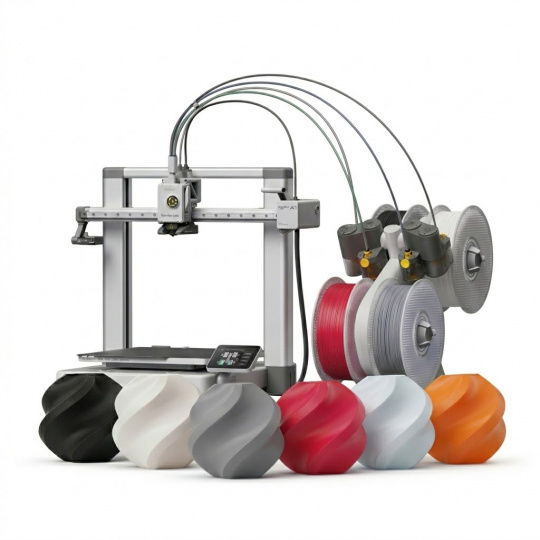 Balení obsahuje také 4 cívky a 2 náplně vysoce kvalitního PLA filamentu, což z něj činí perfektní řešení pro ty, kteří hledají nekompromisní kvalitu a připravenost k použití od první minuty.