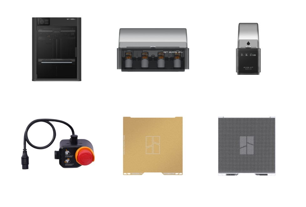 Sada obsahuje systémy AMS 2 Pro a AMS HT , které umožňují automatické podávání, sušení a skladování filamentů za kontrolovaných podmínek . AMS 2 Pro podporuje většinu oblíbených materiálů, zatímco AMS HT s teplotou sušení až 85 °C je určen pro náročné technické filamenty. Oba systémy jsou vybaveny senzory teploty a vlhkosti a funkcí odstraňování vlhkosti, což zajišťuje stabilní kvalitu tisku.