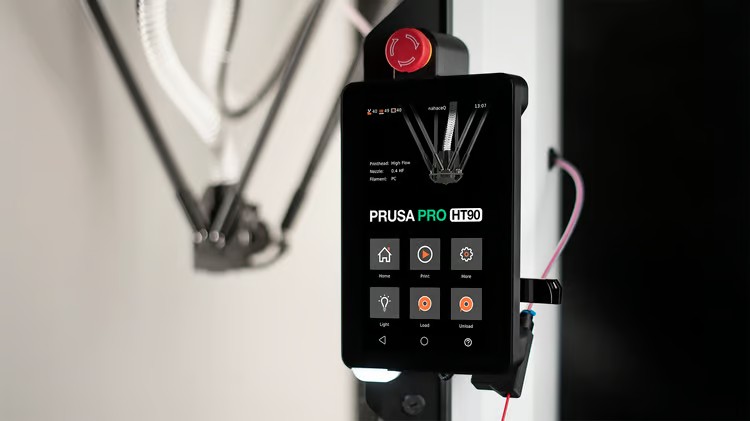 Prusa Pro HT90 je průmyslová delta 3D tiskárna navržená pro spolehlivou práci s technickými filamenty , včetně PEI (Ultem), PEEK a PCCF. Nabízí tiskový objem Ø300 x 400 mm a dvě vyměnitelné hlavy - High-Flow pro rychlý tisk a High-Temp s rozsahem až 500 °C . S topným ložem až do 155 °C a komorou vyhřívanou na 90 °C zajišťuje vynikající přilnavost vrstev a eliminuje problémy s deformací. Inovativní chladicí systém a HEPA filtr zajišťují vysokou kvalitu a bezpečnost práce. Automatická kalibrace a dotykové rozhraní usnadňují tisk i méně zkušeným uživatelům. HT90 umožňuje tisknout offline i vzdáleně přes Prusa Connect - s náhledem kamery a webovým ovládáním.