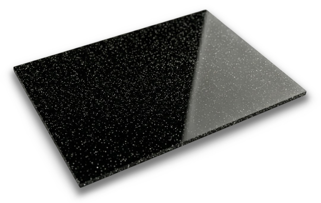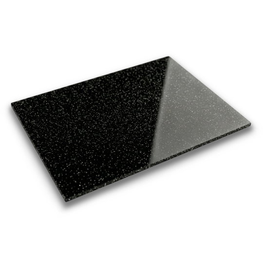 Popis produktu: PMMA akrylátová deska - 3 mm - 400 x 600 mm - třpytivě černá - 1 ks.