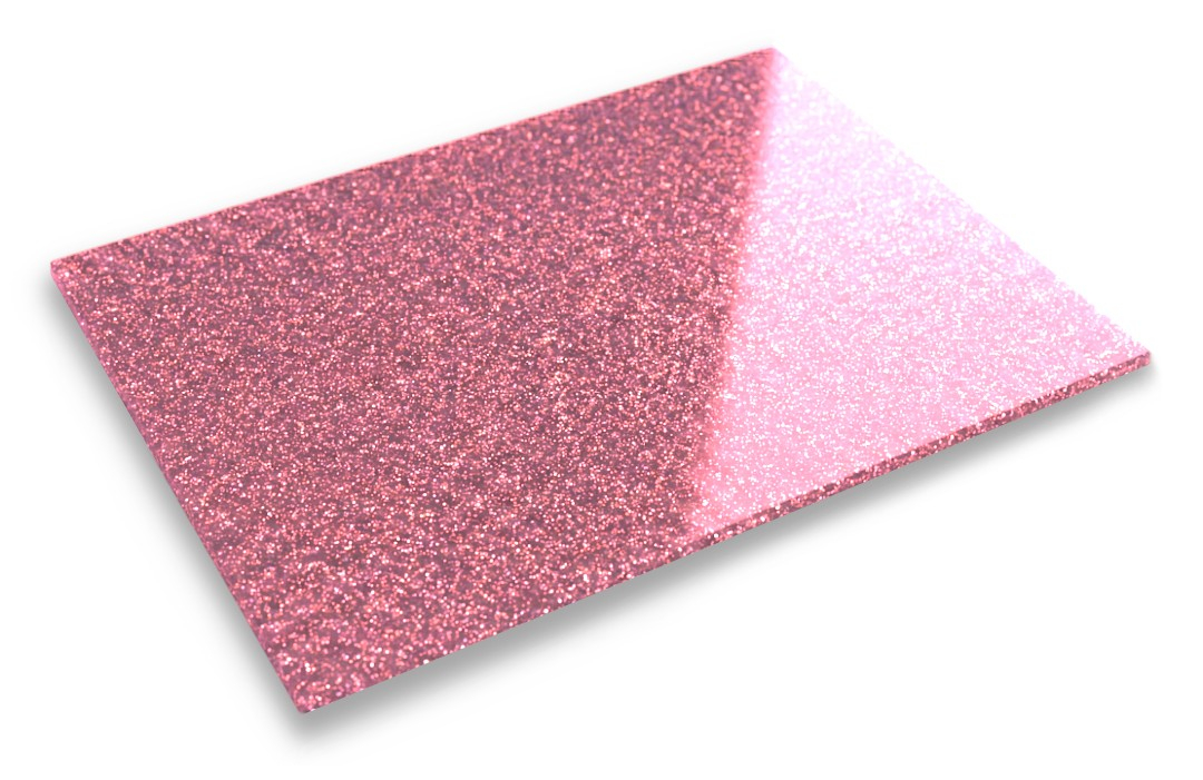 Popis produktu: PMMA akrylová deska - 3 mm - 400 x 600 mm - třpytivě růžová - 1 ks.