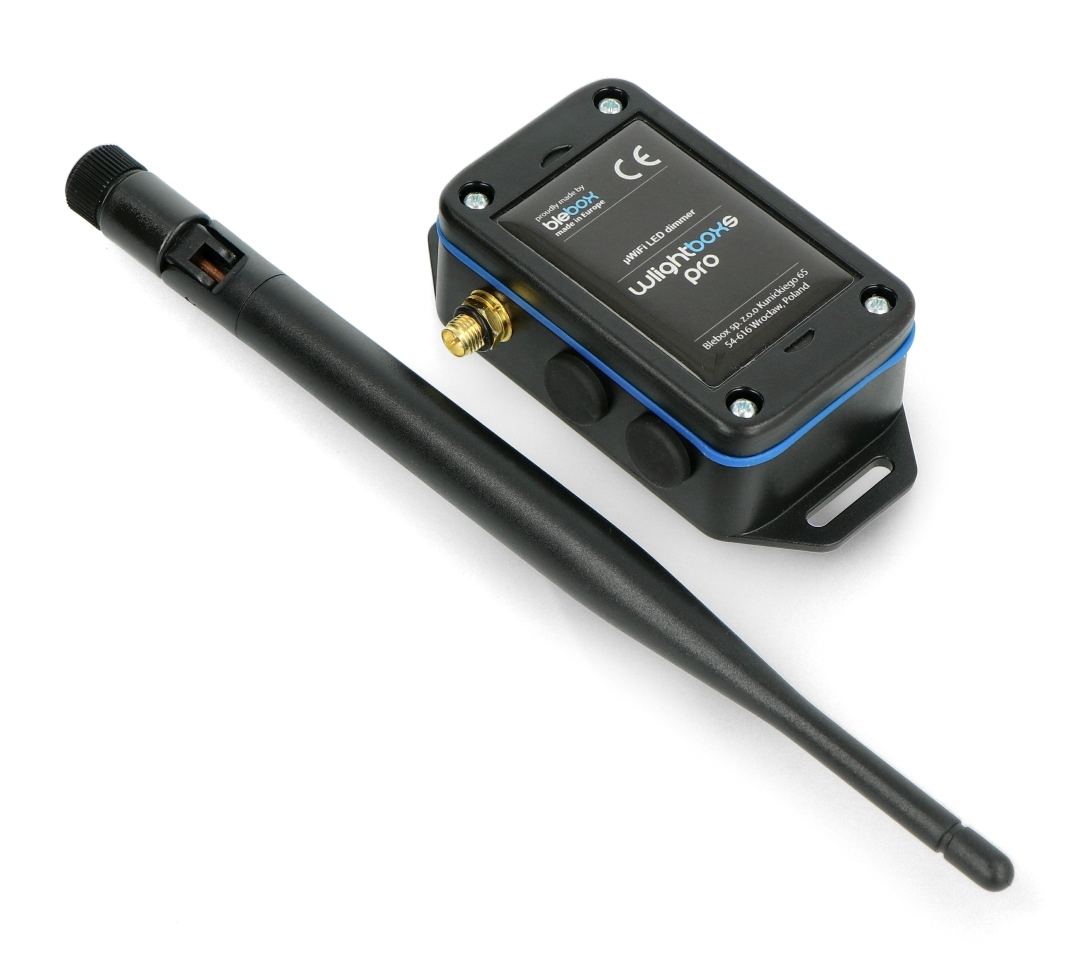 Připravený modul ovladače, který umožňuje ovládat jas LED osvětlení prostřednictvím WiFi sítě pomocí aplikace pro mobilní zařízení. Je napájen napětím 12 V nebo 24 V , maximální zatížení je 120 W. Verze Pro je vybavena anténou dlouhého dosahu a zapečetěným vodotěsným pouzdrem. Zařízení má šroubovací připojení pro montáž vodičů.