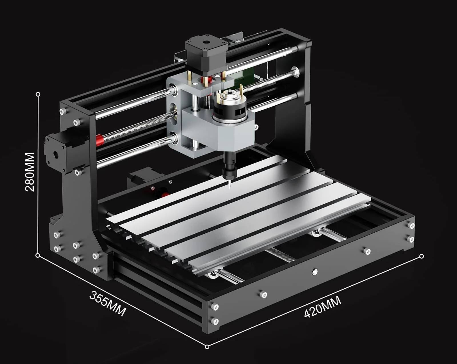 TwoTrees TTC3018S je kompaktní zařízení s rozměry 420 x 355 x 280 mm , které se bez problémů vejde i do malé dílny nebo kanceláře. Díky použití odolných materiálů - hliníku, bakelitu a akrylu - je celá konstrukce nejen lehká ( 6,4 kg ), ale také odolná proti vibracím , což se promítá do vyšší kvality gravírování.