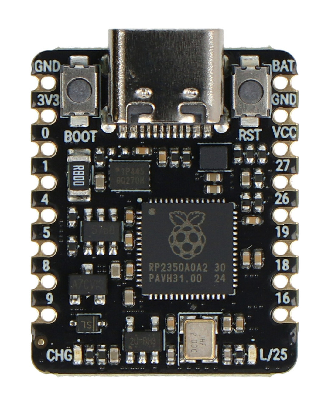 - Mikrokontrolér s duální architekturou - integrovaný RP2350 dokáže přepínat mezi jádry ARM Cortex-M33 a RISC-V (Hazard3), což nabízí velkou všestrannost návrhu