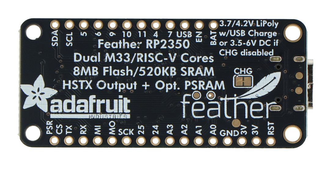 Popis produktu: Feather RP2350 - deska s mikrokontrolérem RP2350 a konektorem HSTX - Adafruit 6000