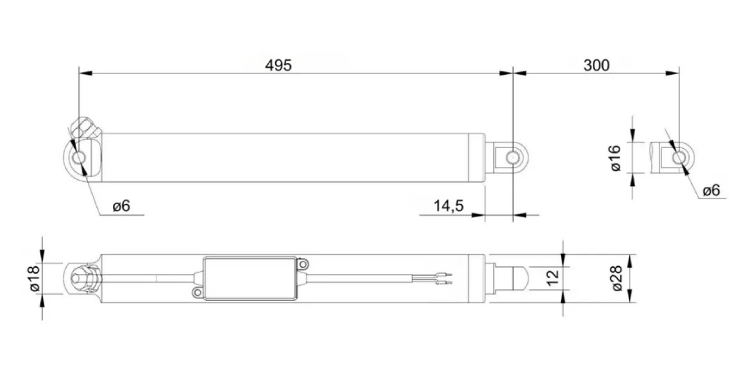 Popis produktu: Trubkový aktuátor TLA-1 500 N 7 mm/s 12 V s přepěťovým spínačem - zdvih 30 cm