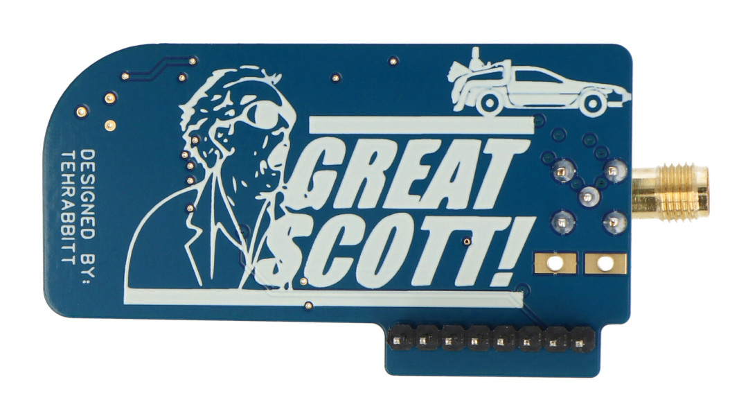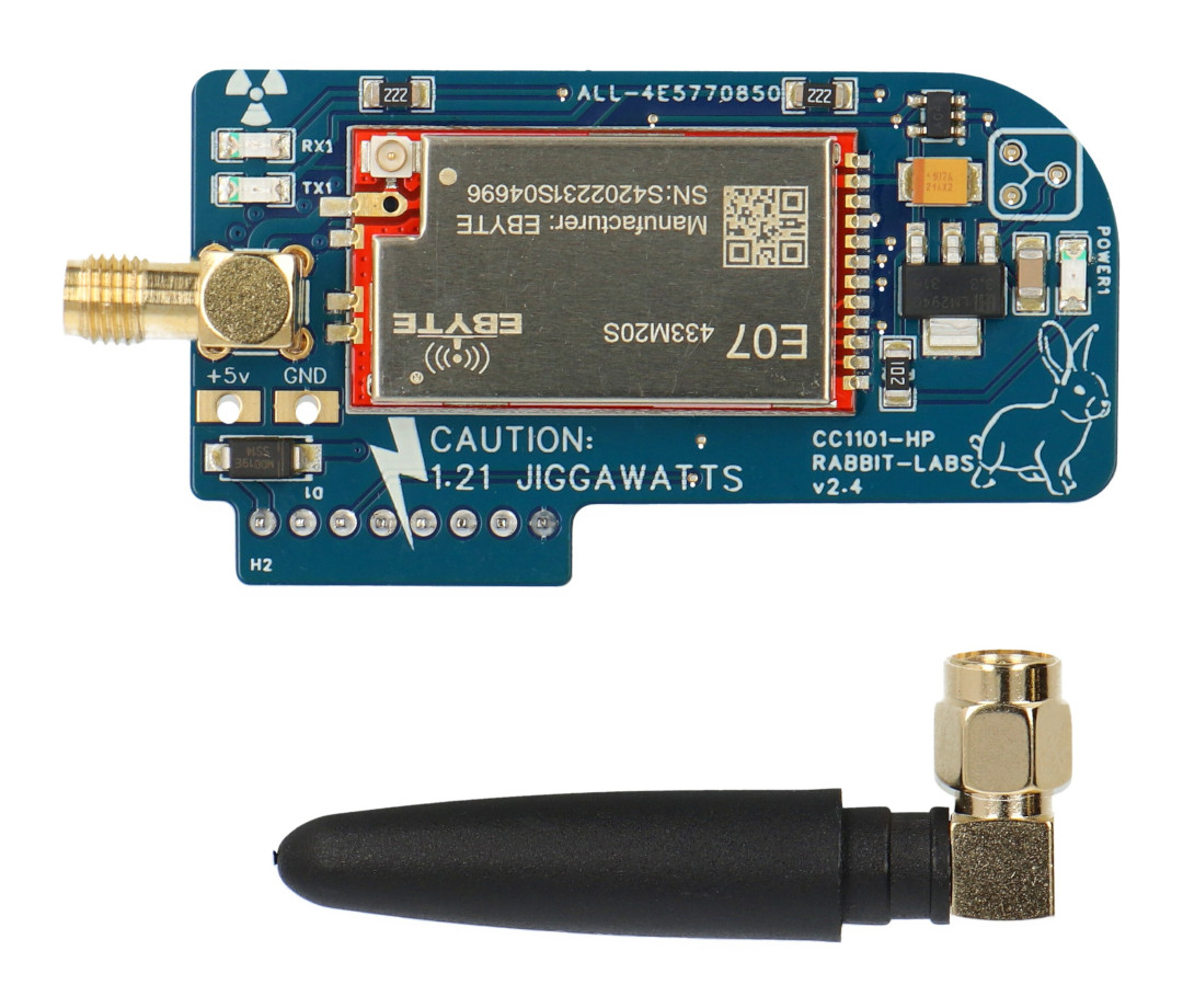 Popis produktu: Flux Capacitor - zesilovač signálu CC1101 s anténou 433 MHz pro Flipper Zero - Rabbit Labs