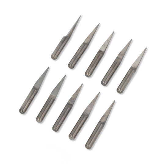 Fréza ve tvaru V s úhlem 10° a průměrem čepele 0,4 mm. Používá se v CNC strojích a je vyrobena z odolné, otěruvzdorné a ohybu odolné wolframové oceli, která je navíc vyztužena titanovou povrchovou vrstvou. Tyto frézy se používají v mnoha průmyslových odvětvích, včetně elektroniky pro vrtání desek plošných spojů. Lze je také použít k řezání PVC, mědi, hliníku, dřeva a dřevovláknitých desek. Sada obsahuje 10 identických fréz. Produkt se prodává v plastovém pouzdře pro snadné skladování. Každá čepel je navíc chráněna pružným krytem.