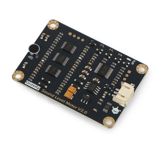 Měřič úrovně zvuku kompatibilní s Arduino. Využívá obvod nástroje a mikrofon s nízkým šumem k přesnému měření hladiny zvuku v prostředí. Měří zvuk od 30 dBA do 130 dBA. Je napájen napětím od 3,3 V do 5 V.