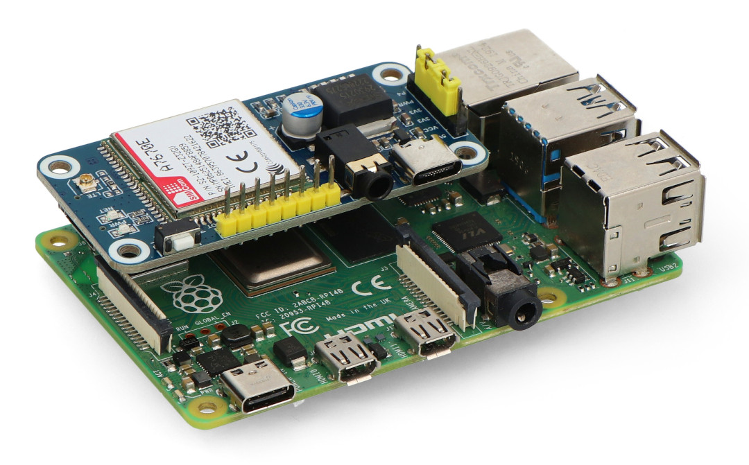 Popis produktu: A7670E LTE Cat-1 HAT pro Raspberry Pi, vícepásmový, 2G GSM/GPRS, LBS - Bezdrátový komunikační modul - Waveshare 20049