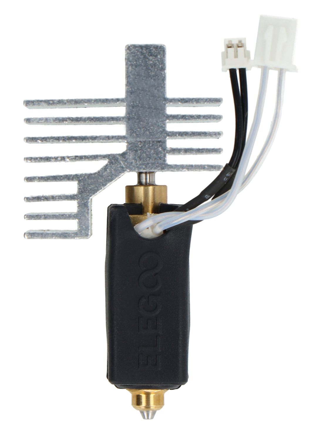 Hotend, vybavený tryskou o průměru 0,6 mm od společnosti Elegoo , byl navržen pro uživatele tiskáren Centauri Carbon , kteří požadují vysoký tiskový výkon . Větší průměr trysky umožňuje rychlejší vytlačování filamentu a tisk větších dílů za kratší dobu . Sada obsahuje keramický ohřívač, termistor a hliníkový chladič pro efektivní chlazení. Hotend si díky použití tvrzených a otěruvzdorných materiálů perfektně poradí s filamenty obsahujícími abrazivní přísady.