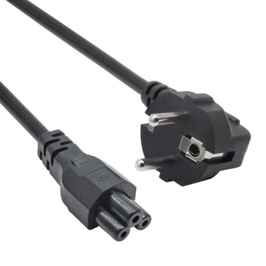 Popis produktu: Napájecí kabel IEC C5 / IEC C7 s trojlístkem - 1 m černý - Akyga AK-NB-08C