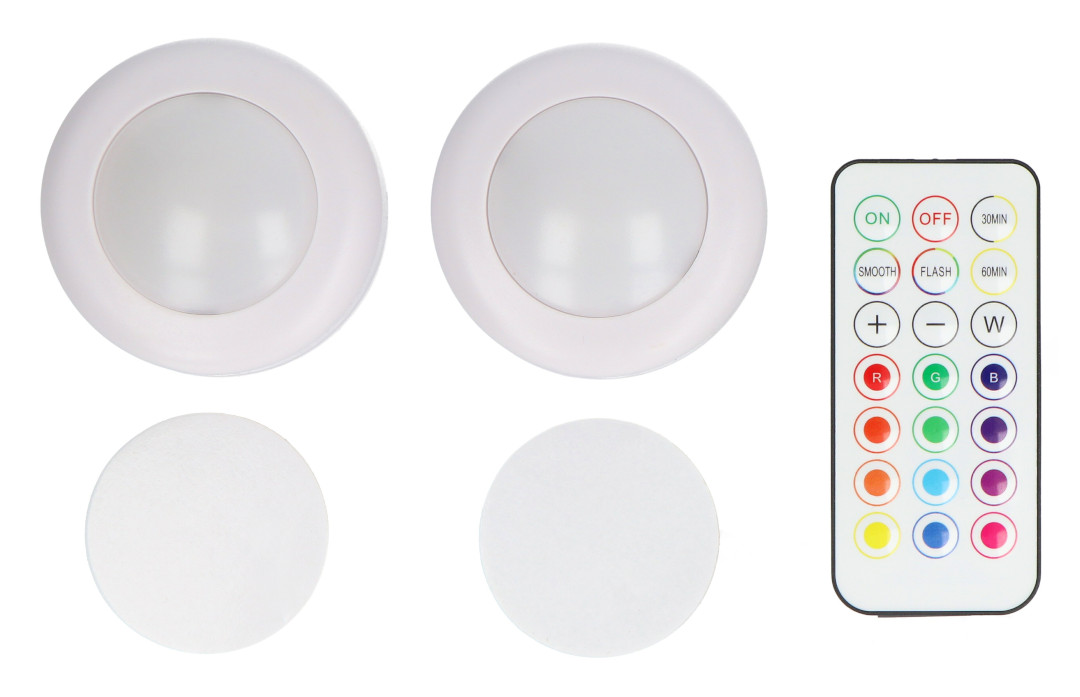 Popis produktu: Sada RGBW LED světel s dálkovým ovládáním - KC007 - 16 barev - 62,2 x 27,6 mm - 2 ks - Bambu Lab
