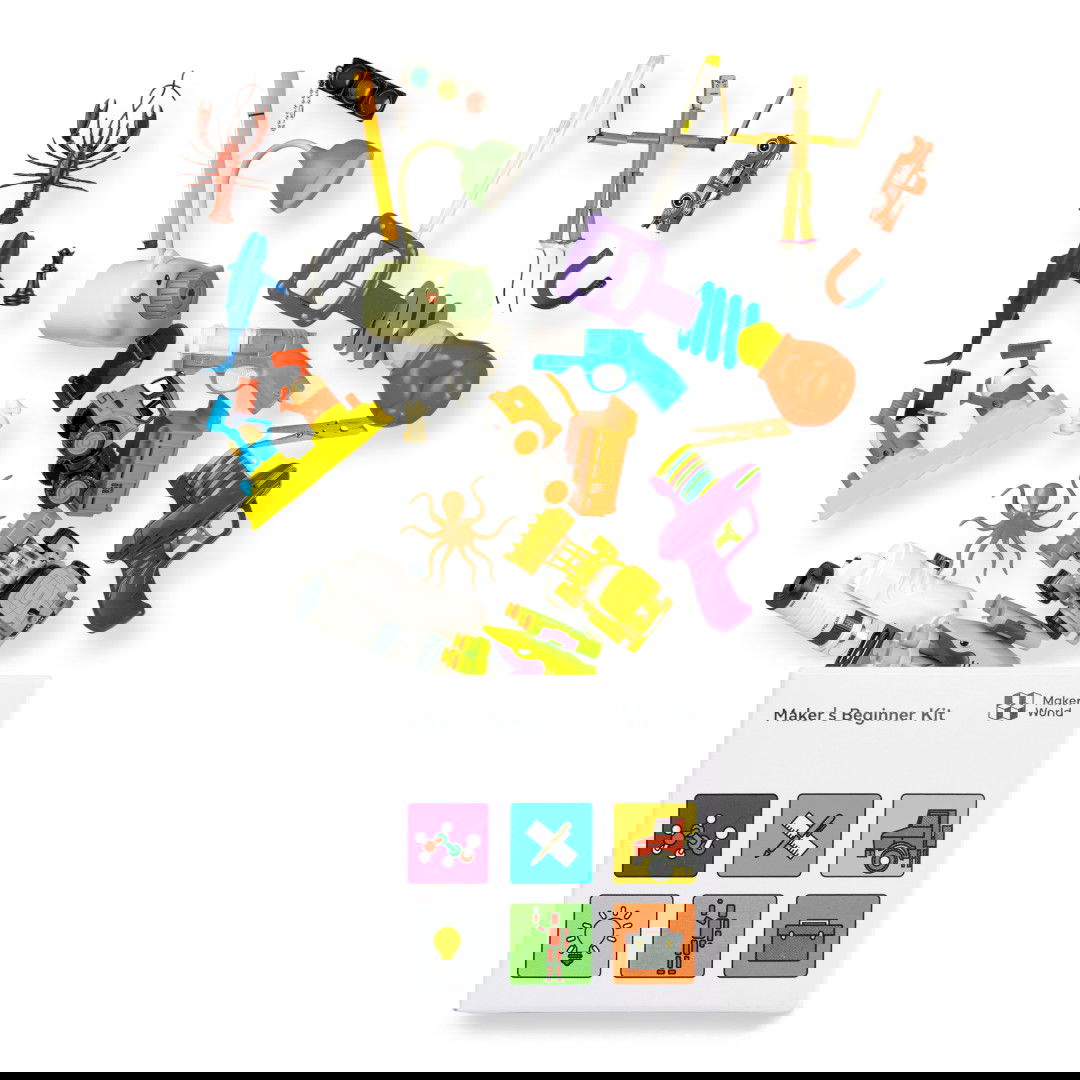 Sada Maker's Beginner Kit je pečlivě vybraná sada příslušenství pro nadšence do 3D tisku , která jim umožňuje stavět kreativní a interaktivní modely, jako jsou odpalovače disků, výtahy, mechanické hračky a LED svíčky. Sada obsahuje stejnosměrné motory, převodovky, magnety, pružiny a LED světla , což umožňuje projekty inspirované modely z platformy MakerWorld. Sada obsahuje návod a QR kód vedoucí do neustále aktualizované databáze modelů. Je to perfektní nástroj pro učení mechaniky, elektroniky a kreativního myšlení.