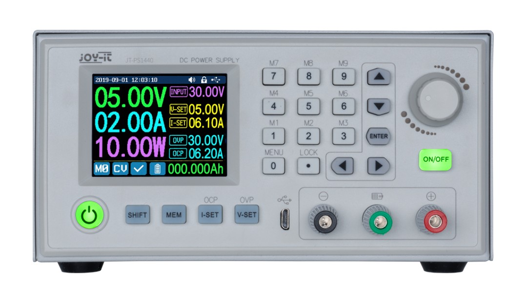 Joy-IT PS1440-C-Pro je pokročilý programovatelný laboratorní zdroj s přesnou regulací napětí od 0,01 V do 60 V a proudu od 0,01 A do 24 A. S výstupním výkonem 1440 W je zdroj ideální jak pro testování elektronických zařízení, tak pro nabíjení baterií. Ovládání se provádí pomocí intuitivního panelu s klávesnicí a knoflíkem a všechna nastavení jsou přehledně zobrazena na 2,4" barevném displeji . Tento model umožňuje uložit až 9 napěťových profilů a integrované rozhraní RS485 zajišťuje komunikaci na velké vzdálenosti. PS1440-C-Pro také nabízí rozsáhlé bezpečnostní funkce , včetně ochrany proti nadproudu a přepětí.