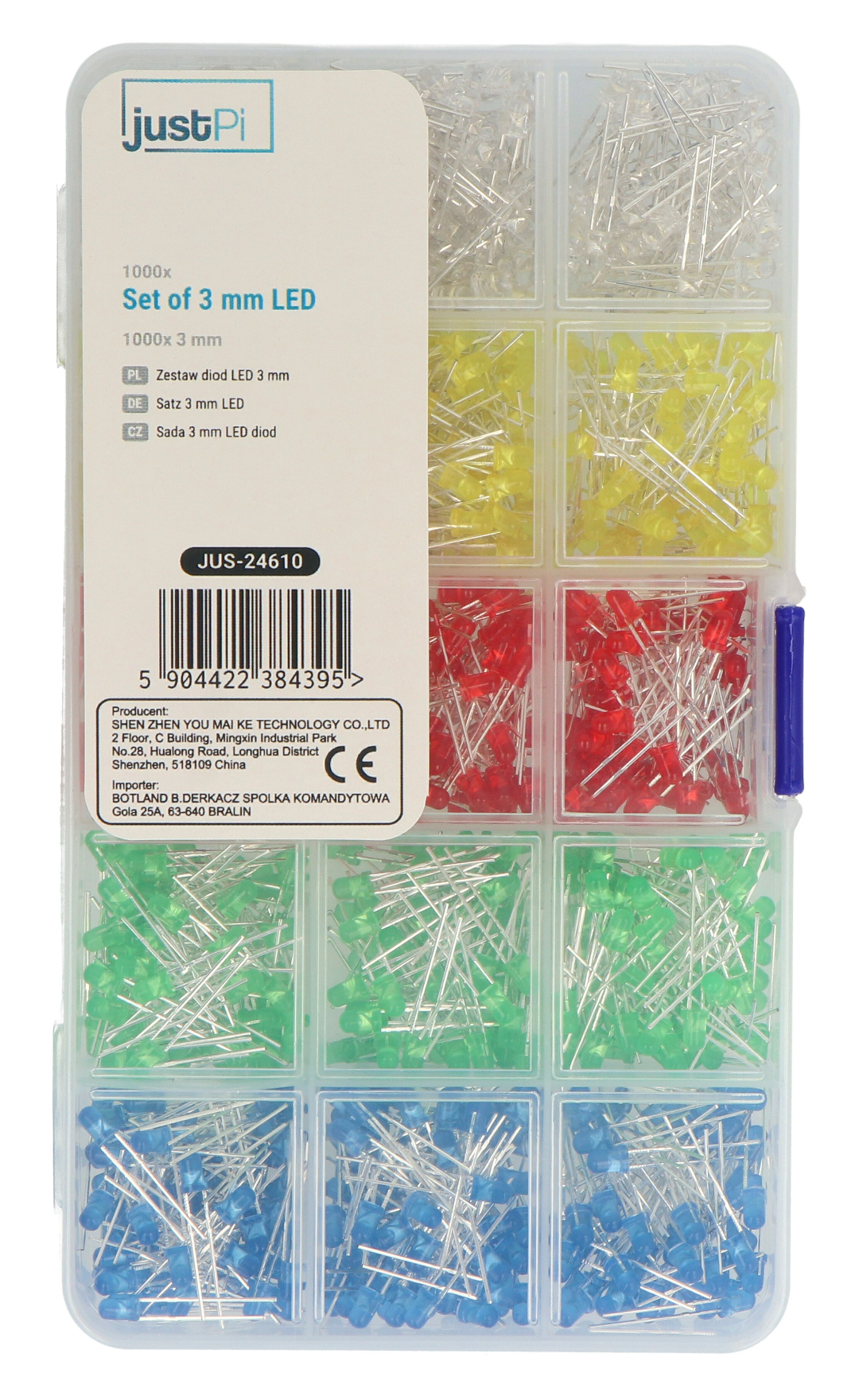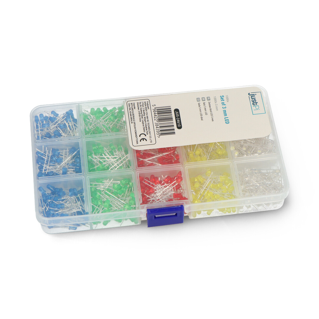 Popis produktu: Sada 3mm LED diod - justPi - 1000 ks + organizér