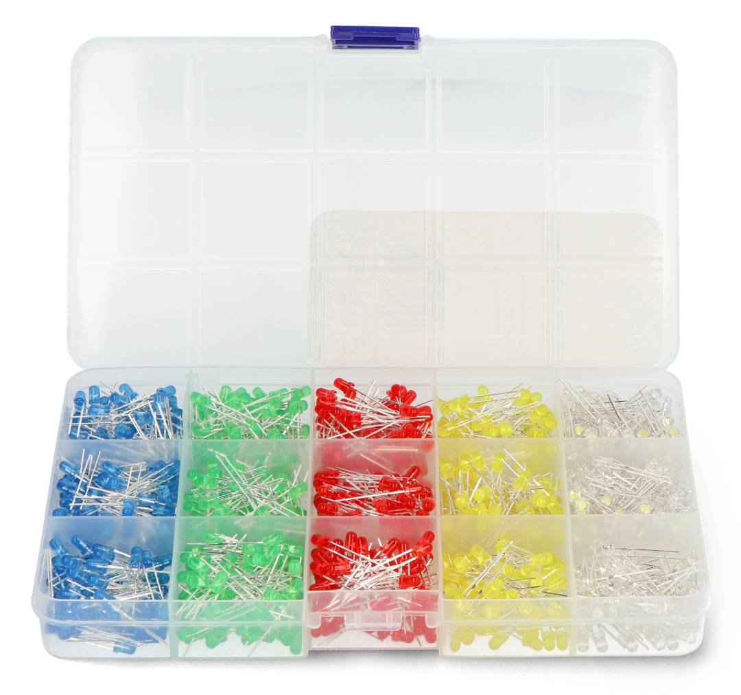 - Sada obsahuje 1000 LED diod o průměru 3 mm v různých barvách (červená, zelená, modrá, žlutá, bílá)