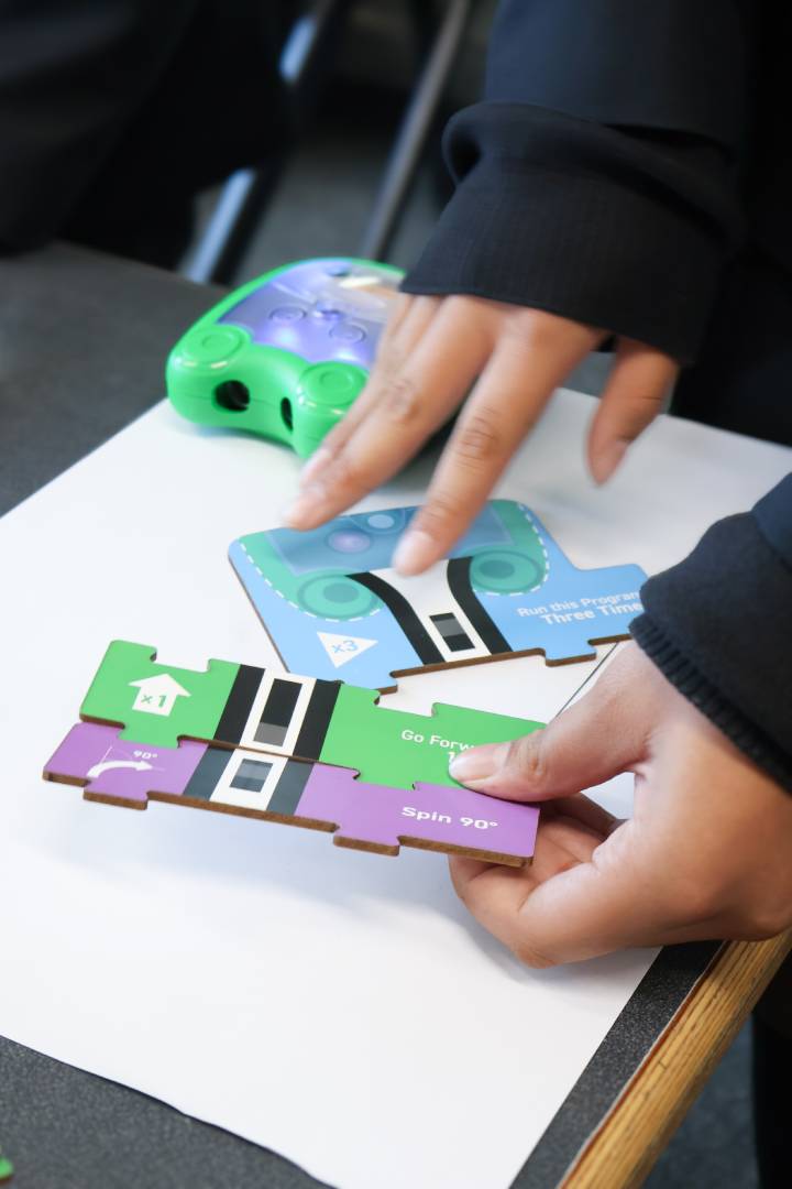 - Bezobrazové programování : Studenti vytvářejí sekvence příkazů pomocí fyzických instrukčních bloků bez použití počítače.
