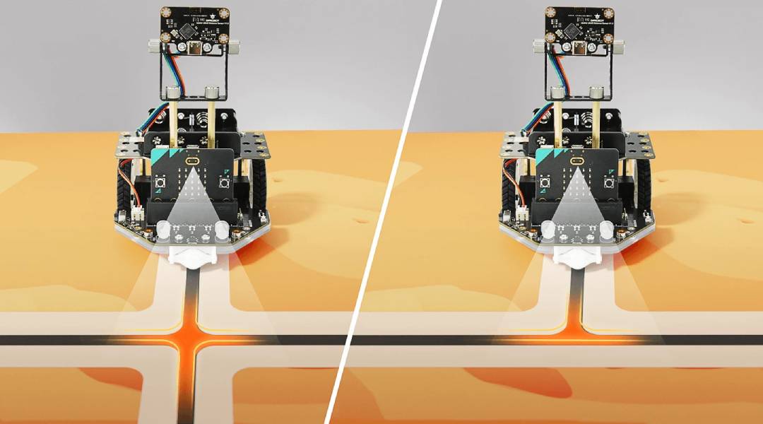 - Vestavěné algoritmy : sledování čar a rozpoznávání průsečíků na úrovni čipu snižují zátěž modulu micro:bit