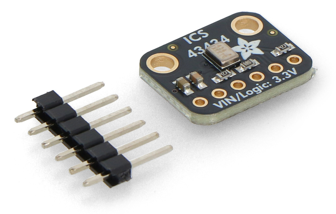 ICS43434 je ultratenký digitální MEMS mikrofon s rozhraním I2S, který převádí zvuk přímo na digitální data , čímž eliminuje potřebu analogového převodu a minimalizuje rušení. Frekvenční rozsah 50 Hz až 15 kHz a vestavěný dolnopropustný filtr zajišťují čistý zvuk. Díky digitálnímu výstupu I2S mikrofon podporuje tři signály: hodinový signál, datový signál a výběr slova , což umožňuje snadné připojení k mikrokontrolérům Cortex řady M (SAMD21, SAMD51, ESP32, RP2040, RP2350) nebo minipočítačům, jako je Raspberry Pi . Uživatel si může vybrat kanál (levý/pravý) pomocí pinu Select a při použití dvou mikrofonů může dosáhnout plného sterea. Mikrofon má port namontovaný dole - otvor mikrofonu by měl směřovat ke zdroji zvuku. Pracuje v rozsahu napětí 1,6 V až 3,6 V a není navržen pro logiku 5 V. Modul poskytuje okamžitý 24bitový výstup bez nutnosti konfigurace firmwaru nebo ovladače.