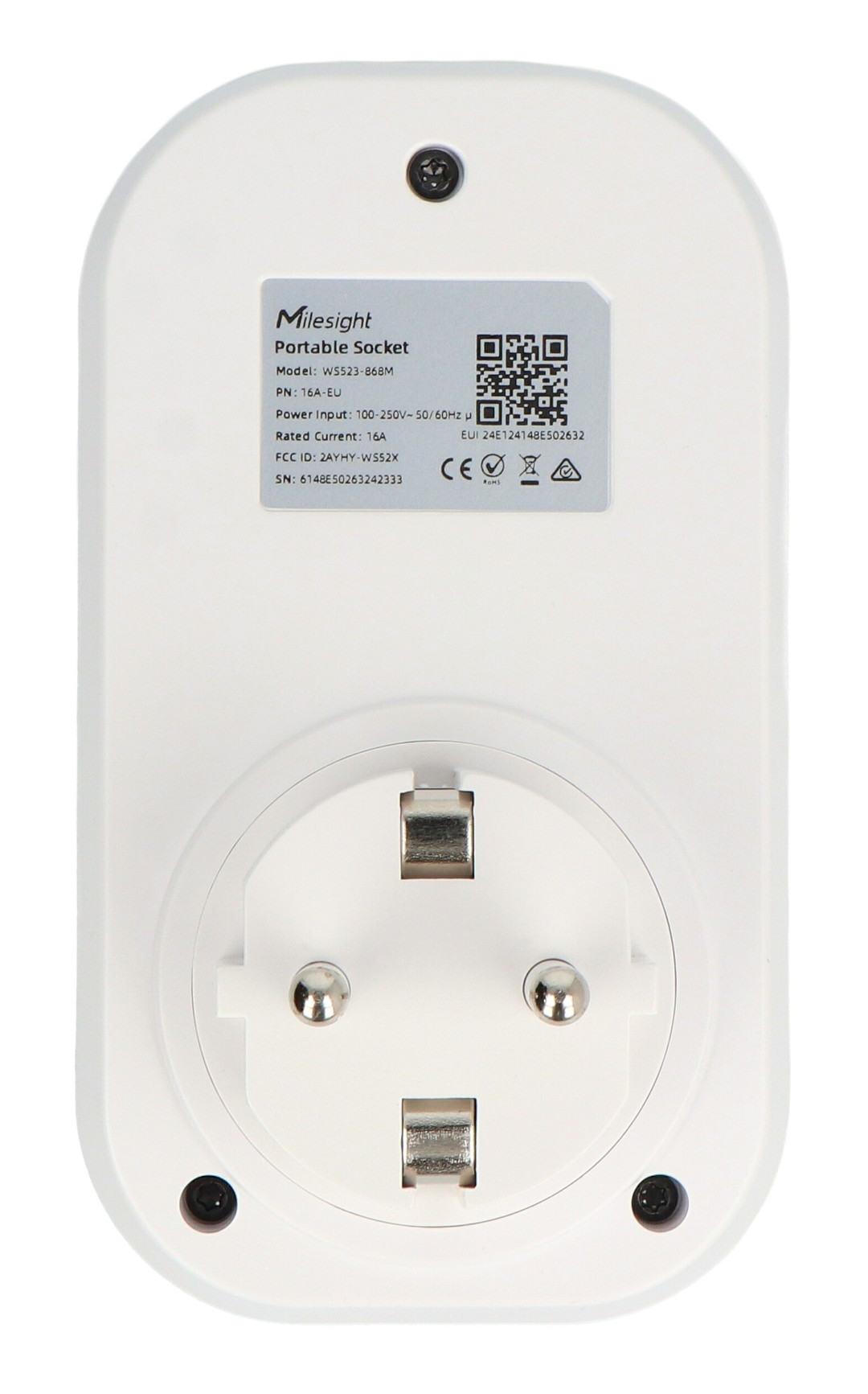 Milesight WS523 je chytrá zásuvka pro lokální i vzdálené monitorování a ovládání elektrických zařízení . Měří napětí, proud, činný výkon, účiník a celkovou spotřebu energie a odesílá upozornění na přetížení a výpadek proudu . Je kompatibilní se standardními branami LoRaWAN a spolupracuje s cloudem Milesight IoT , čímž poskytuje vizualizaci dat a automatizaci scénářů.