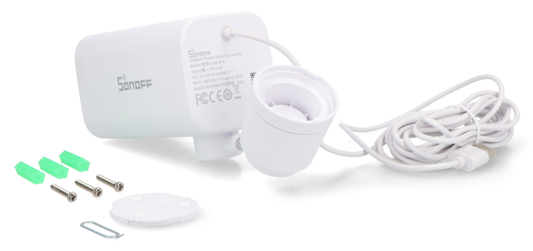 Kamera Sonoff CAM-B1P je určena pro montáž na zeď na fasádu budovy nebo pod střechu . Sada obsahuje montážní hmoždinky a šrouby pro bezpečné upevnění. Kamera je napájena 5V/2A přes rozhraní USB typu A. Konfigurace se provádí pomocí aplikace eWeLink po 5 sekundách podržení resetovacího tlačítka a připojení k Wi-Fi síti 2,4 GHz.