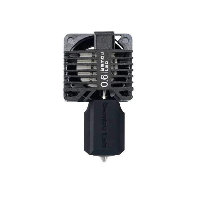 Kompletní hotend hlava od Bambu Lab , kompatibilní s tiskárnami řady X1 Carbon. Je vybavena tryskou z tvrzené oceli o průměru 0,6 mm , která zaručuje přesný a rychlý proces tisku. Sada obsahuje ventilátor, termistor a keramické topné těleso . Instalace hlavy do tiskárny je velmi jednoduchá, vyžaduje pouze imbusový klíč. Integrací chladiče, hrdla, topného bloku a trysky do jedné koherentní jednotky lze hotendy Bambu Lab sestavit bez předchozího zahřátí . To eliminuje typické problémy s únikem filamentu mezi tryskou a rozhraním tepelné izolace, které se často vyskytuje u jiných 3D tiskáren.