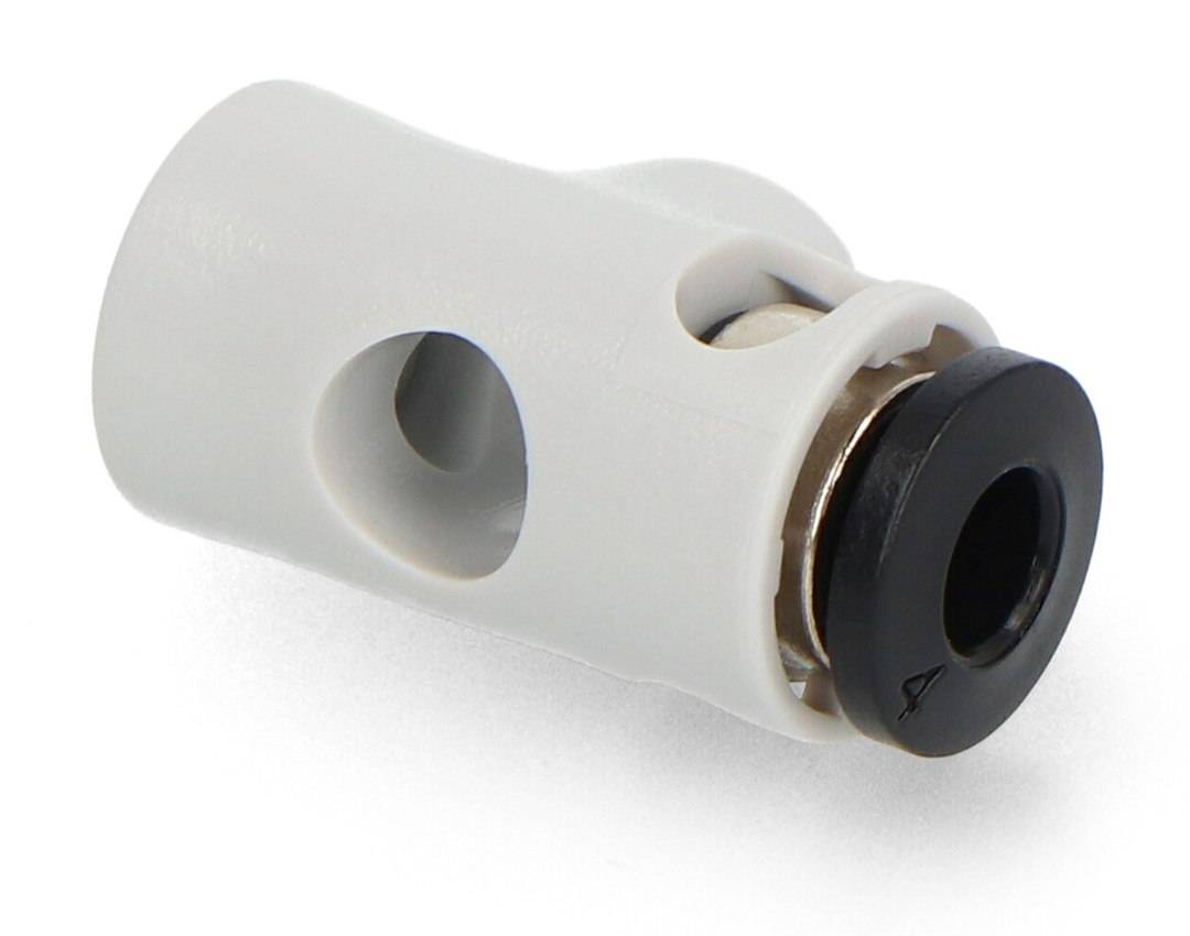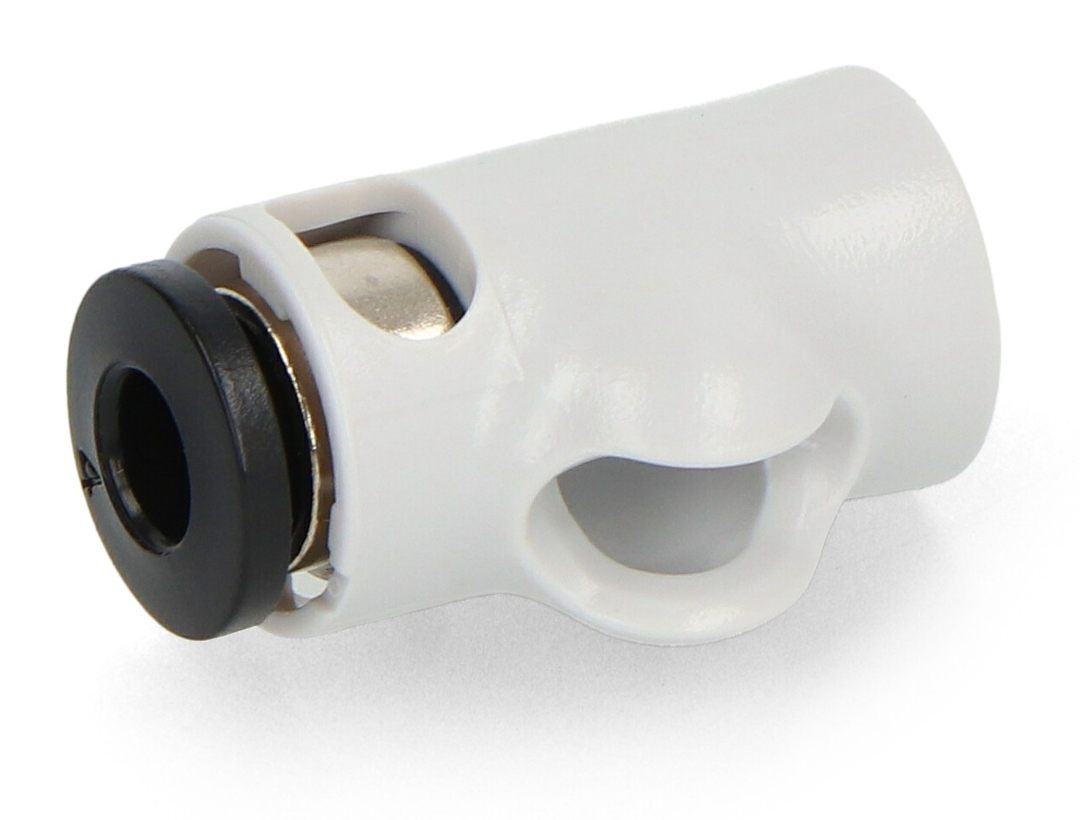 Konektor PTFE trubice se nachází na konci vodítka filamentu poblíž držáku cívky na tiskárně Bambu Lab A1 . Umožňuje bezpečné spojení mezi trubicí filamentu a tiskovou hlavou , což je nezbytné pro plynulé podávání materiálu. Poškození této součásti může vést k přerušení tisku, proto se doporučuje její výměna v případě opotřebení.