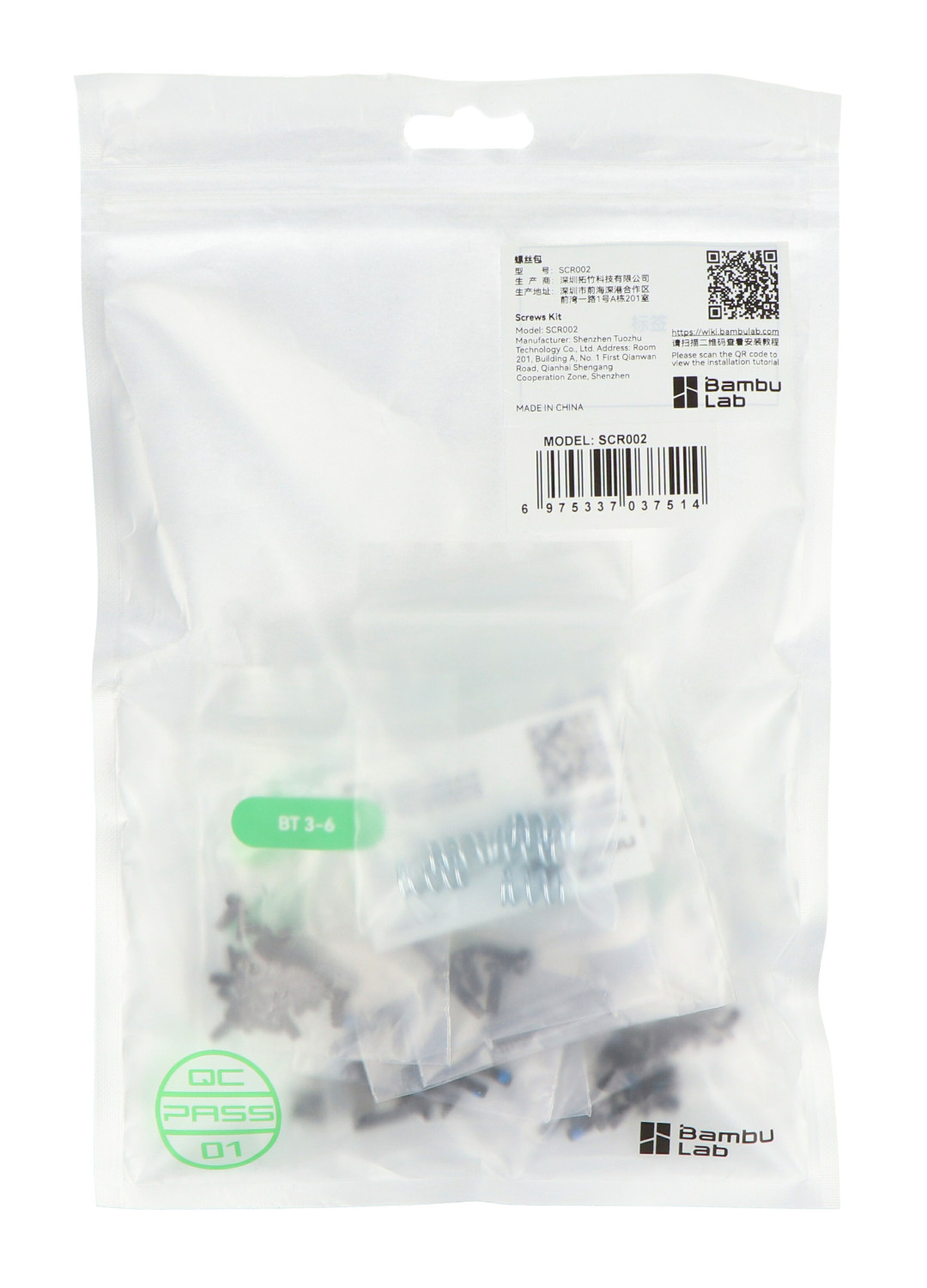 Tato sada šroubů je praktickým doplňkem pro každého uživatele 3D tiskáren Bambu Lab X1 a P1 a systému AMS . Sada obsahuje šrouby nejběžněji používané při konstrukci a montáži těchto zařízení – od pouzdra a základní desky až po tiskovou hlavu a chladicí ventilátory. Každý typ šroubu byl vybrán s ohledem na specifickou aplikaci a jeho kvalita zajišťuje bezpečné a odolné upevnění . Jedná se o nezbytnou sadu pro servis, údržbu a úpravu vašeho zařízení.