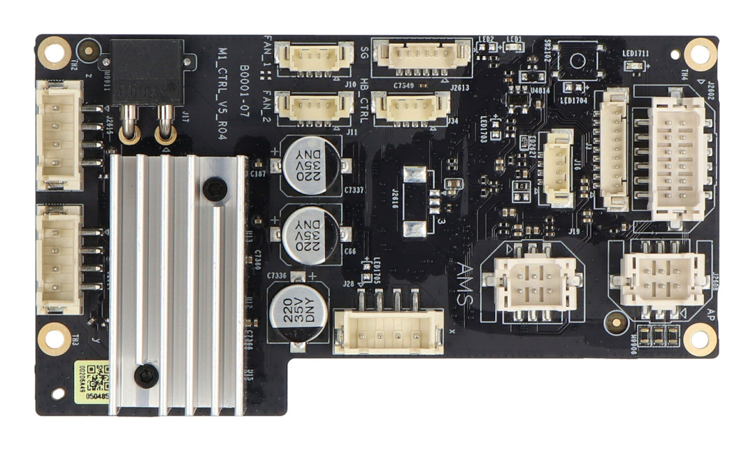 - Centrální modul pro správu 3D tiskárny - řídí pohyb osy XYZ, ovládá parametry topného stolu a je zodpovědný za komunikaci s periferními moduly, včetně systému AMS