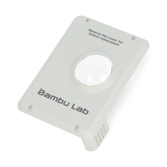 Přední kryt tiskové hlavy je navržen tak, aby chránil klíčové komponenty tiskové hlavy tiskáren řady Bambu Lab A1 . Jeho konstrukce zahrnuje kruhové, průhledné okénko, které umožňuje uživateli vizuálně sledovat otáčení ozubeného kola extruderu během provozu . Kryt je vyroben z odolného, teplotně odolného plastu a kombinuje funkčnost s estetickým vzhledem. Je ideálním řešením, pokud je původní kryt poškozen nebo je třeba jej vyměnit.