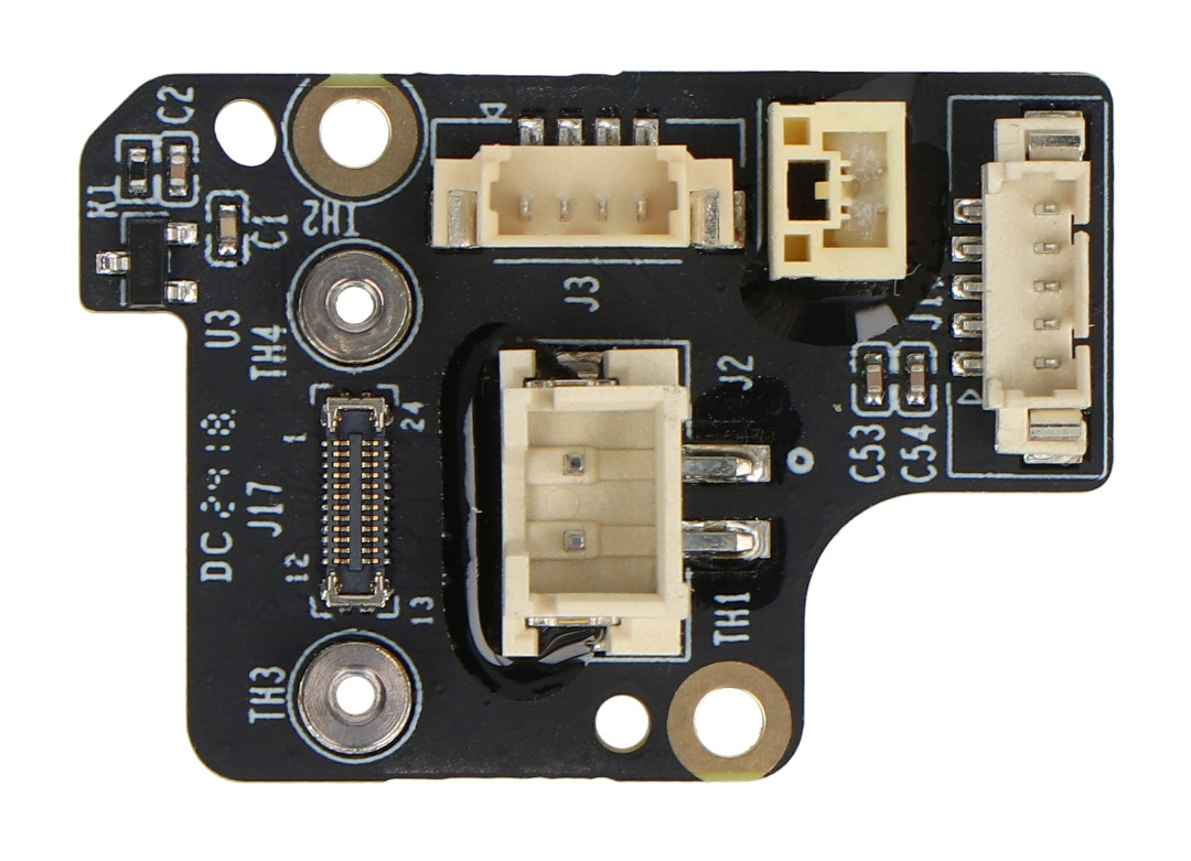Speciální propojovací deska pro 3D tiskárny řady Bambu Lab X1 , určená pro integraci kabelů tiskových hlav s hlavní řídicí deskou TH Board V9 . Tato komponenta je zodpovědná za přenos signálů a napájení do komponent, jako je extruder, hotend, ventilátory a senzory , a zajišťuje tak jejich stabilní a spolehlivý provoz. Deska je kompatibilní pouze s verzí V9 desky TH Board a není kompatibilní se staršími verzemi . Díky kompaktním rozměrům a montážní sadě (lepidlo a šrouby jsou součástí balení) je její instalace rychlá a pohodlná.