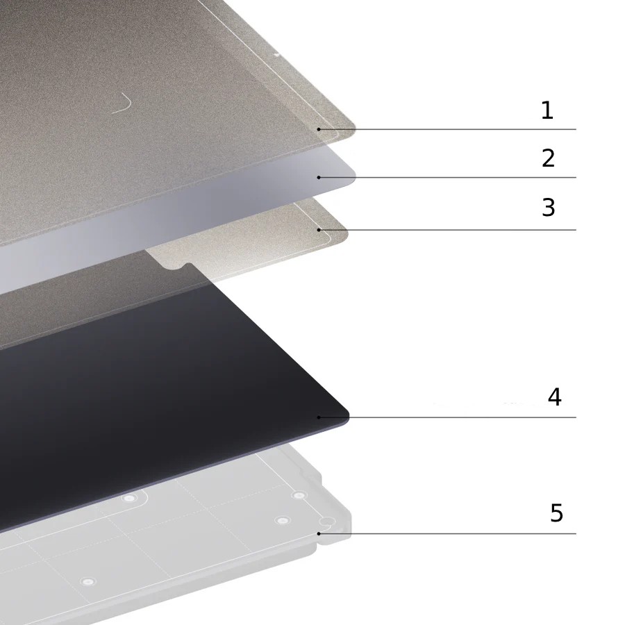 Obě strany desky mají texturovaný povrch, což zajišťuje vysokou přilnavost první vrstvy i u velkých, složitých a funkčních modelů. Tato konstrukce minimalizuje riziko odlupování výtisků a výrazně zlepšuje jejich kvalitu. Texturovaná PEI deska usnadňuje práci s filamenty s vyšším smrštěním, snižuje deformaci a eliminuje potřebu dalších lepidel. Pro zachování životnosti povrchu se doporučuje odstraňovat výtisk až po úplném vychladnutí platformy a při používání ručního nářadí postupovat opatrně .