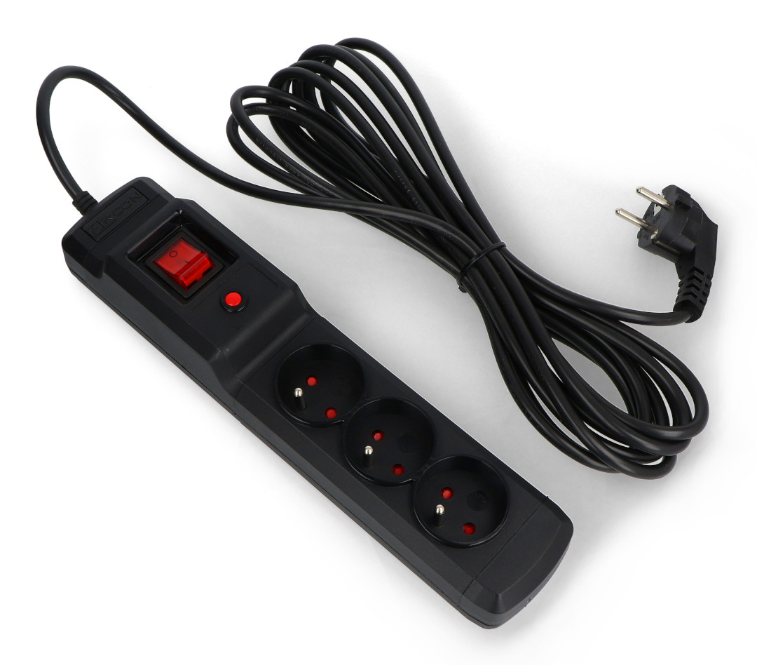 Opis produktu: Prodlužovací kabel se zabezpečením Arcon Multi M3 černý - 3 zásuvky - 5 m