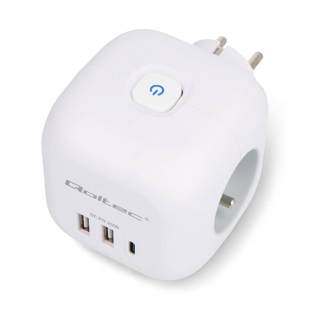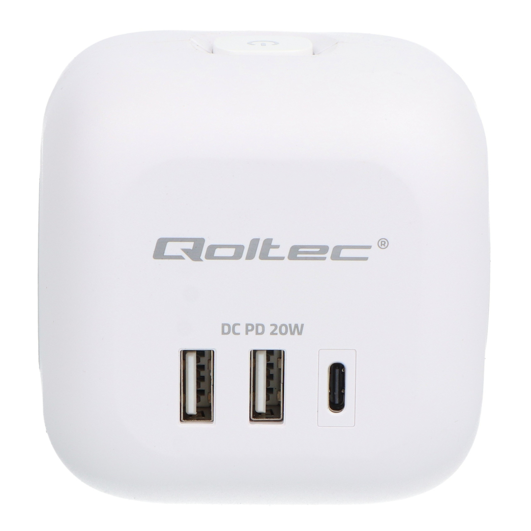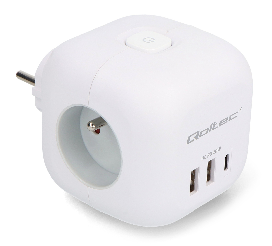 Napájecí adaptér Qoltec 6 v 1 je moderní a kompaktní řešení, které umožňuje současně napájet a nabíjet více zařízení z jednoho místa. Je vybaven třemi zásuvkami typu E a třemi porty USB (2 x USB typu A a 1 x USB typu C Power Delivery 20 W), takže odpadá potřeba více nabíječek a prodlužovacích kabelů, což pomáhá udržovat váš pracovní prostor uklizený. Chytrý krychlový design a ergonomické uspořádání zásuvek zajišťují, že se ani větší zástrčky nebudou navzájem blokovat. Port USB typu C s výkonem 20 W umožňuje rychlé nabíjení chytrých telefonů, tabletů a dalších mobilních zařízení, zatímco porty USB typu A poskytují stabilní napájení pro každodenní příslušenství.