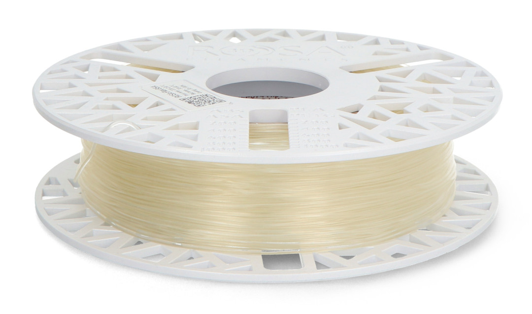 Průhledný filament Rosa3D, navinutý na cívce, váží 0,5 kg a má průměr 1,75 mm . Materiál se vyznačuje výjimečnou chemickou odolností . Flex 85A má vysokou přilnavost mezi vrstvami , což zaručuje velmi kvalitní tisk. Navíc je odolný vůči roztahování a zachovává si svůj původní tvar i při stlačení a drcení. Produkt je plně kompatibilní s tiskárnami, které nemají zámky bránící použití kazet od třetích stran.
