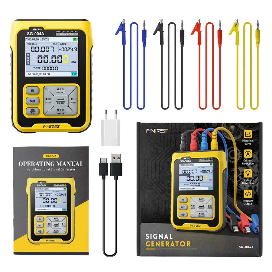 FNIRSI SG-004A je kompaktní, multifunkční generátor signálů určený pro automatizační techniky a techniky údržby. Zařízení generuje a měří signály v průmyslových standardech – od 0 mA do 24 mA, 0 V do 24 V, 0 Hz až 9999 Hz – a také signály mV, odporu a termočlánků . Model SG-004A je vybaven funkcí křivky v reálném čase , která umožňuje sledovat změny vstupních a výstupních signálů v reálném čase a zaznamenávat historii měření. Podpora protokolu Modbus, programovatelný režim a možnost aktualizace firmwaru přes USB výrazně zvyšují funkčnost zařízení. Díky kompaktním rozměrům a robustnímu ABS pouzdru se silikonovou ochranou je generátor vhodný pro dílenské i terénní použití.