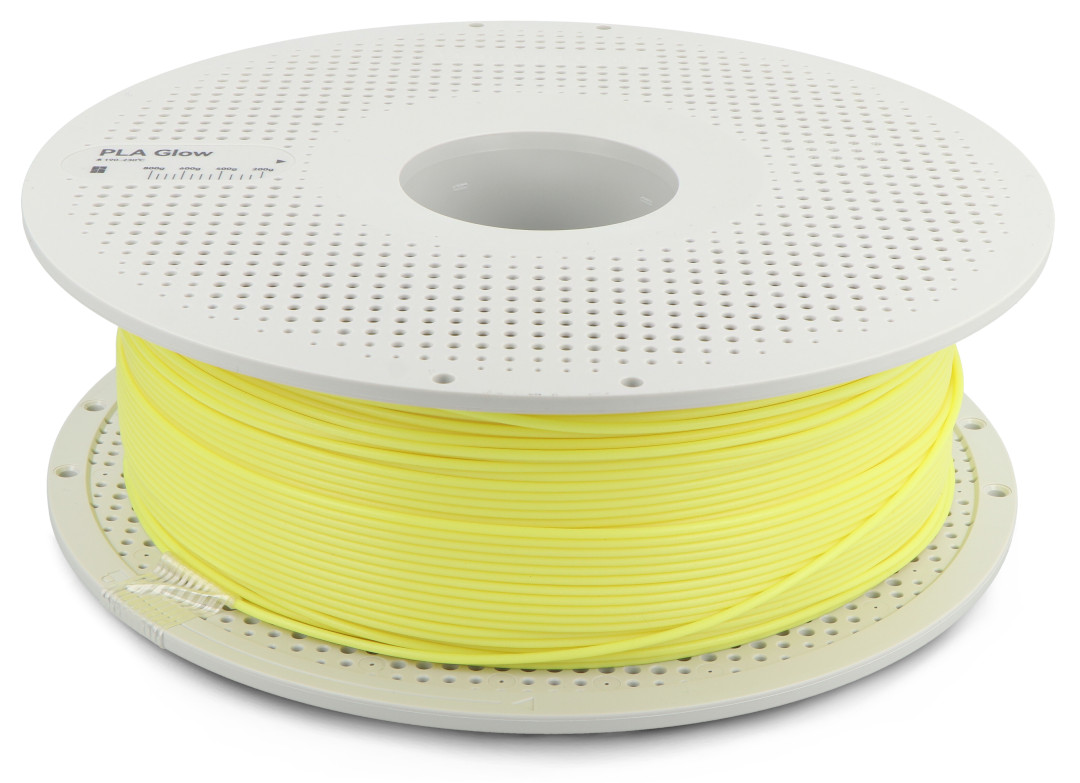 Žlutý filament od Bambu Lab , vyrobený z materiálu PLA Glow , který svítí ve tmě. Výrobek je dodáván ve vakuovém obalu s opakovaně použitelnou cívkou. Určeno pro použití ve 3D tiskárnách pracujících v technologii FFF/FDM. Vložka je biologicky odbouratelná. Průměr vlákna je 1,75 mm a hmotnost materiálu je 1 kg .