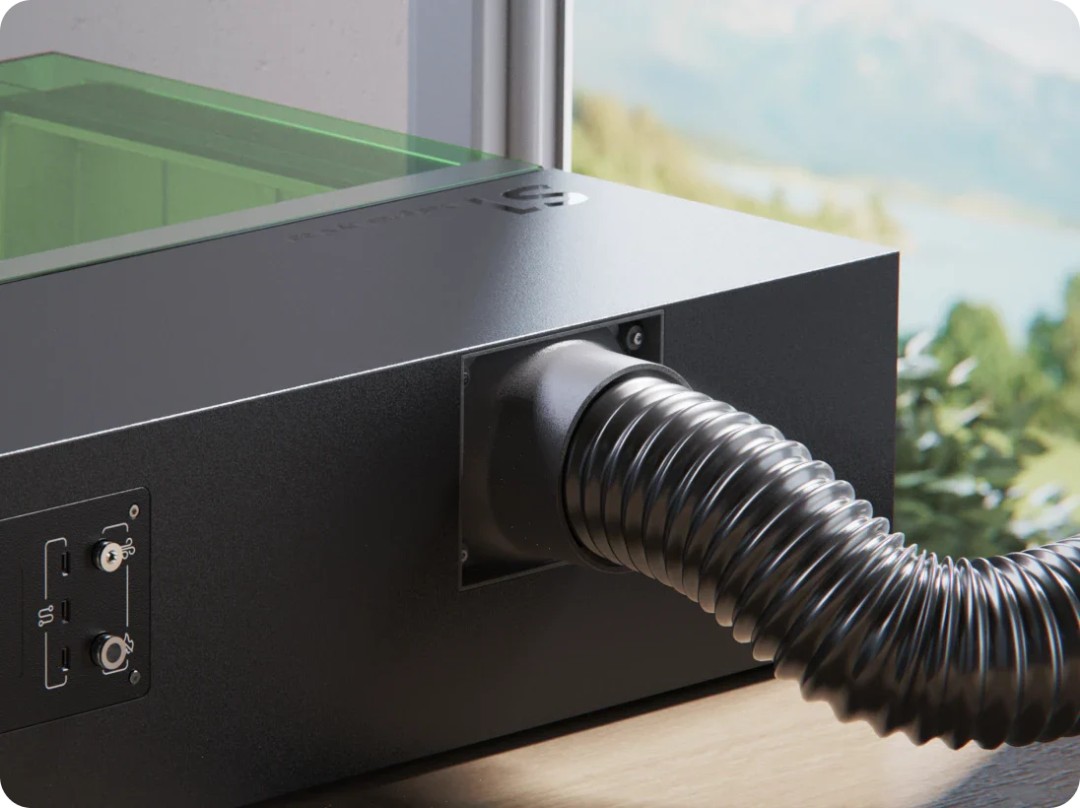 Vestavěný systém chlazení vzduchem a odsávání kouře zajišťují stabilní provoz laseru i během delšího gravírování nebo řezání. Optimalizovaný ventilační systém účinně odstraňuje prach, kouř a další nečistoty vznikající během zpracování materiálu, což vede k lepším výsledkům a delší životnosti optických komponent. Zařízení lze také spárovat s volitelným externím čističem vzduchu , což výrazně zlepšuje komfort a bezpečnost používání v uzavřených prostorách.