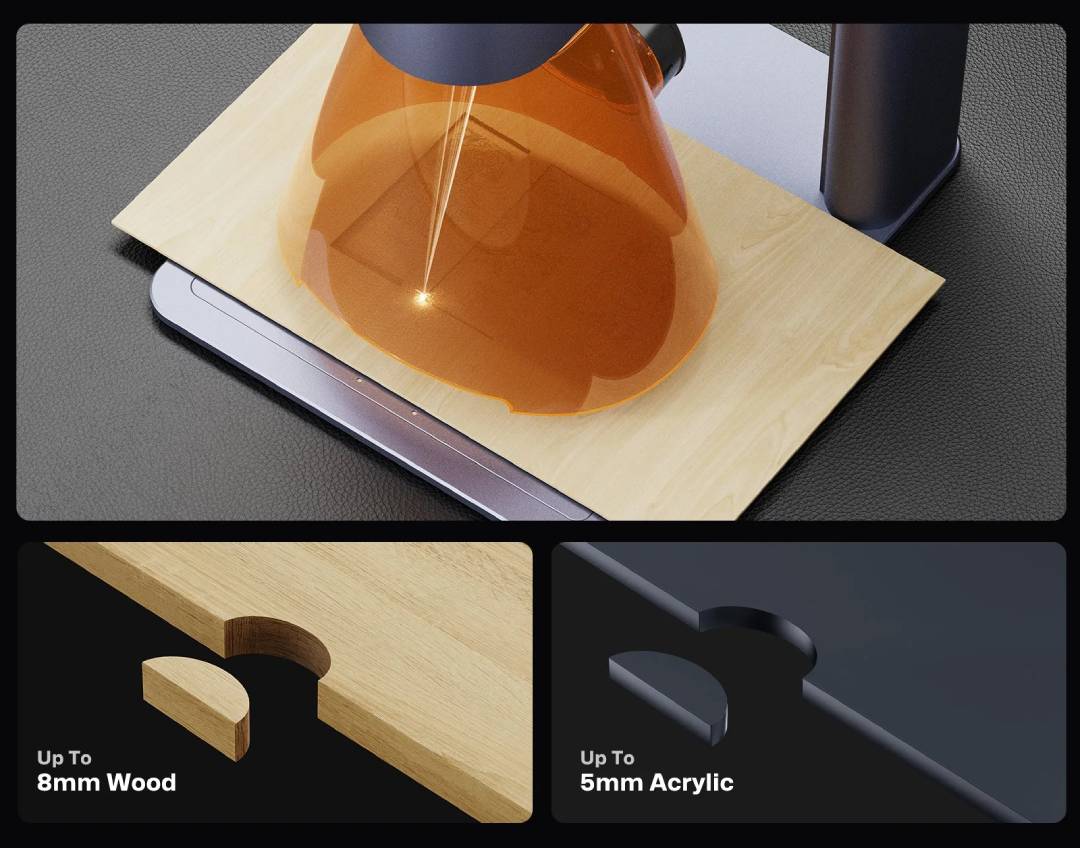 Obsluha LP4 nevyžaduje žádné zkušenosti – vše se provádí pomocí vestavěné barevné dotykové obrazovky nebo aplikace LaserPecker Design Space, která je k dispozici pro Android, iOS, Windows a macOS . Systém si pamatuje předchozí nastavení a umožňuje opakovat úlohy bez nutnosti nové konfigurace. Obrys nebo gravírovací pole si můžete prohlédnout v reálném čase, což výrazně snižuje riziko chyb. LP4 je také plně kompatibilní se softwarem LightBurn , který poskytuje přístup k pokročilým funkcím pro úpravy a automatizaci. To umožňuje zařízení kombinovat snadné použití s profesionálními funkcemi. LP4 se připojuje k operačním systémům prostřednictvím stabilního připojení Bluetooth 5.0 nebo kabelu USB typu C.