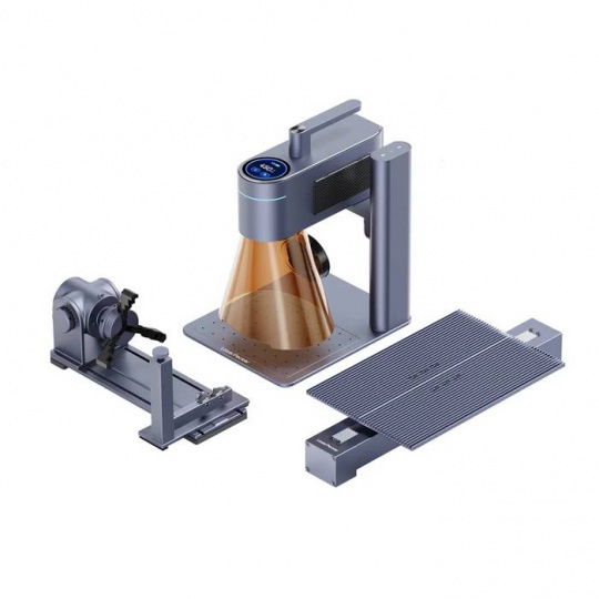 LaserPecker LP4 je moderní, kompaktní laserový gravírovací stroj, který kombinuje 10W diodový laser (450 nm) a 2W infračervený laser (1064 nm) v jednom pouzdře. Tato konfigurace umožňuje přesné značení a řezání široké škály materiálů. Diodový laser vyniká v řezání materiálů ( překližka do 8 mm) a gravírování organických povrchů, zatímco infračervený laser je určen pro přesné značení kovů a plastů bez nutnosti pomocných sprejů. Dotyková obrazovka a intuitivní software vám umožní začít téměř okamžitě, a to i bez zkušeností. Sada Deluxe obsahuje také dva doplňky, které rozšiřují možnosti zařízení: rotační modul a modul Slide Extension .