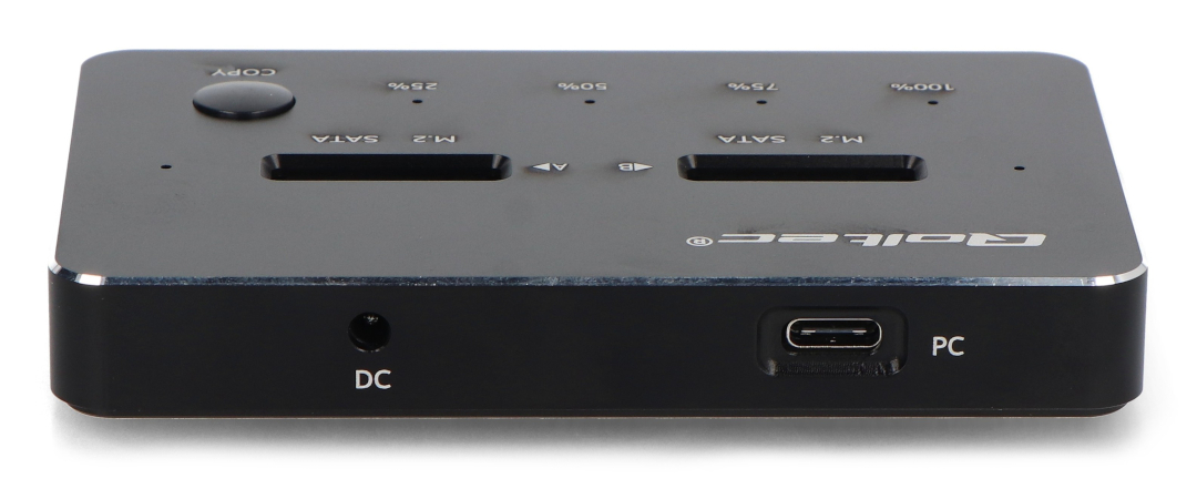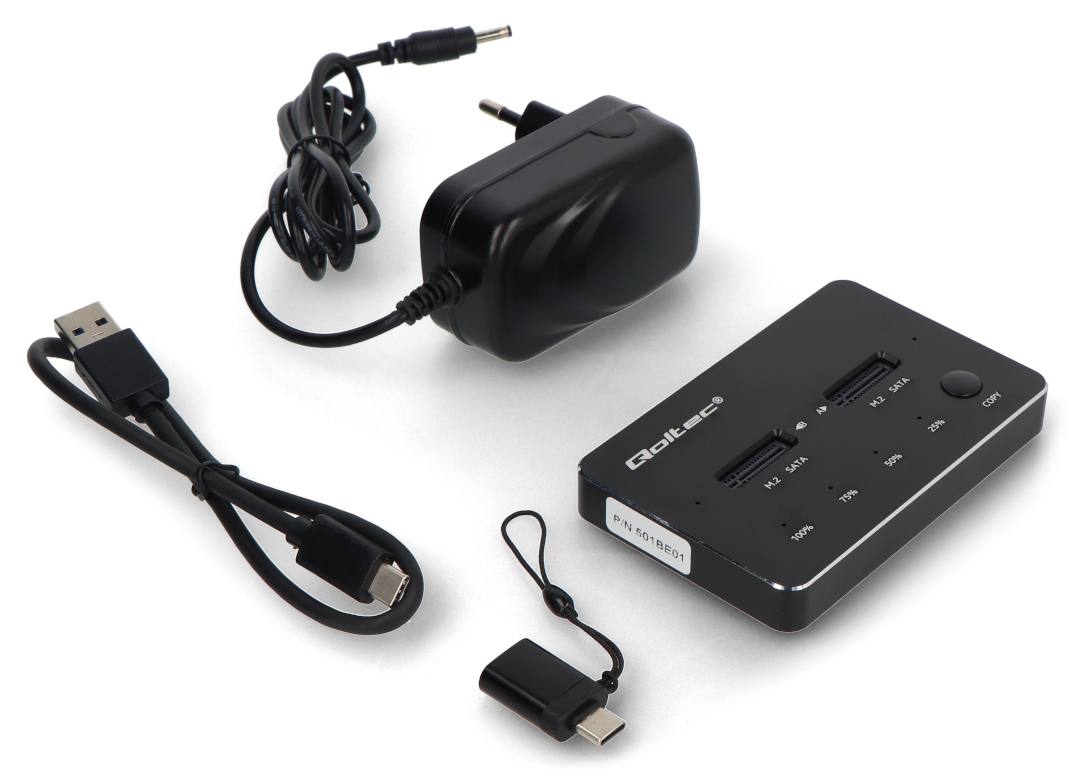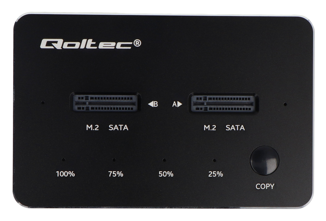 Dokovací stanice Qoltec je funkční a moderní řešení pro uživatele, kteří vyžadují rychlý přístup k datům a pohodlné kopírování souborů. Podporuje dva SSD disky s celkovou kapacitou až 4 TB (max. 2 TB na disk), což z ní činí ideální nástroj pro práci i archivaci dat. Díky rozhraní USB Type-C umožňuje stanice rychlé připojení k počítači a čipová sada JMS561U poskytuje rychlost přenosu dat až 6 Gb/s , což výrazně zkracuje dobu přenosu velkých souborů. Podpora UASP dále zvyšuje výkon optimalizací fronty příkazů a zefektivněním práce s SSD disky. Stanice také nabízí funkci offline kopírování , která umožňuje přenos dat mezi disky bez nutnosti použití počítače. Vestavěné LED diody poskytují aktualizace průběhu v reálném čase a zvyšují tak uživatelský komfort. Stanice je kompatibilní s SSD disky M-Key a B&M-Key a podporuje širokou škálu velikostí: 2230, 2242, 2260, 2280 a 22110. Díky funkci plug and play je navíc připravena k provozu ihned po připojení, bez nutnosti instalace dalšího softwaru.