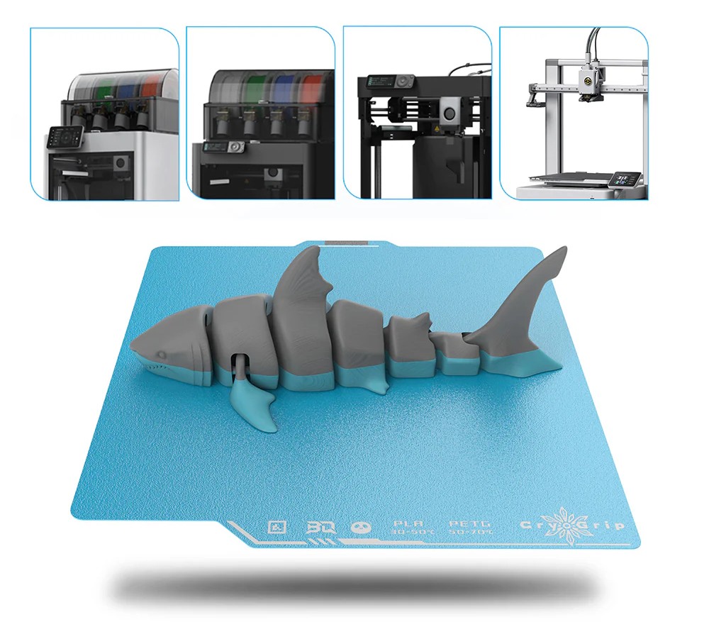 Technologie CryoGrip umožňuje tisk bez nutnosti vyhřívané podložky. Povrch poskytuje vynikající přilnavost modelu při nízkých teplotách a automatické uvolnění po ochlazení . Ideální pro tisk v uzavřených komorách, kde vysoké teploty mohou změkčit filamenty. Umožňuje také tisk se zapnutým pomocným ventilátorem bez obav z průvanu.