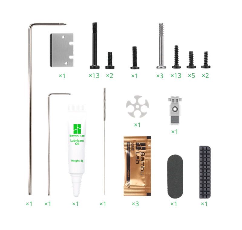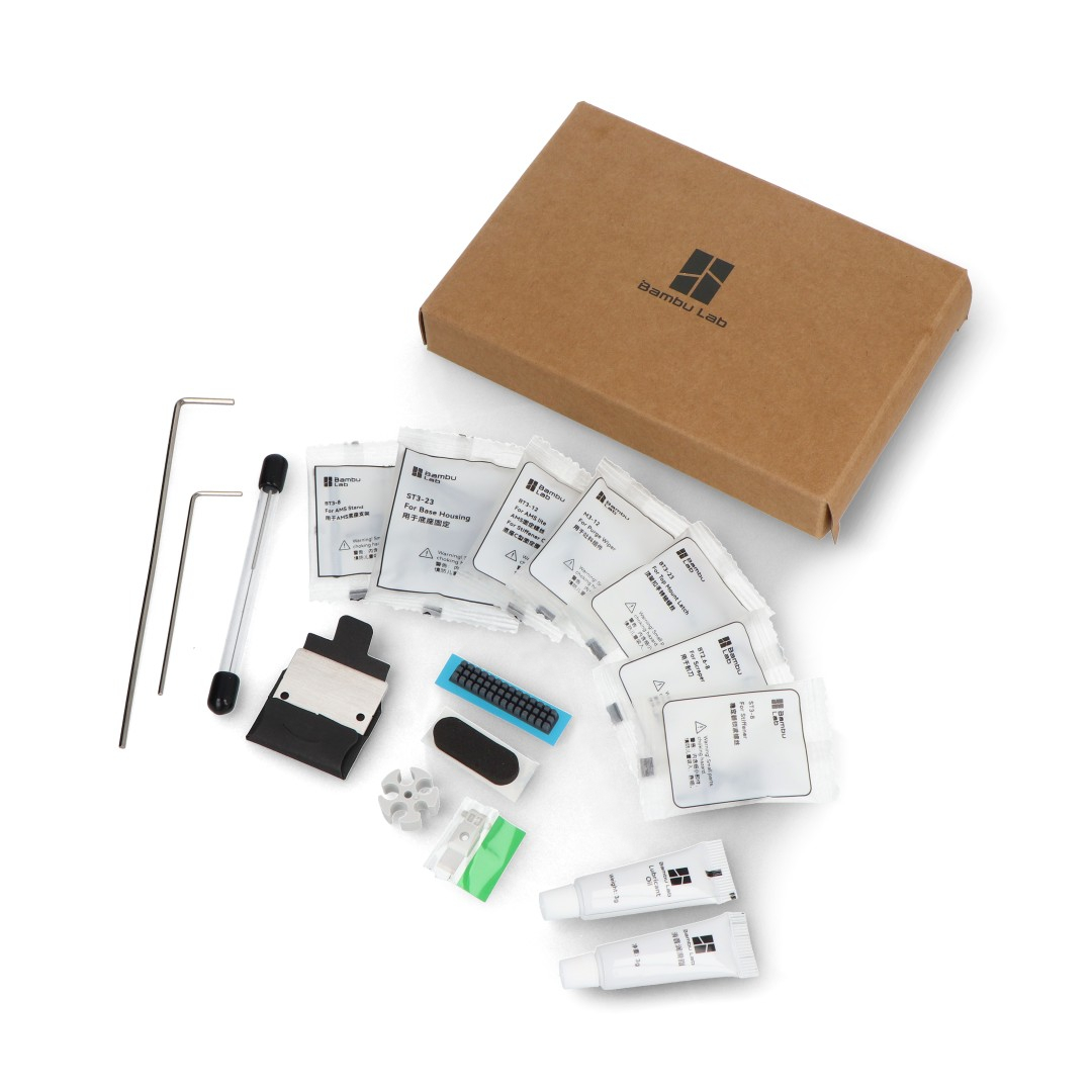 Sada příslušenství je originální příslušenství Bambu Lab určené pro provoz a údržbu tiskárny Bambu Lab A1 . Obsahuje kompletní sadu spotřebního materiálu a montážních komponentů, včetně nástrojů, maziv, šroubů pro instalaci AMS Lite , řezačky filamentu a jehel pro čištění trysek . Je to praktické řešení pro začátečníky i pokročilé uživatele, kteří chtějí dlouhodobě zachovat efektivitu a přesnost tiskárny.