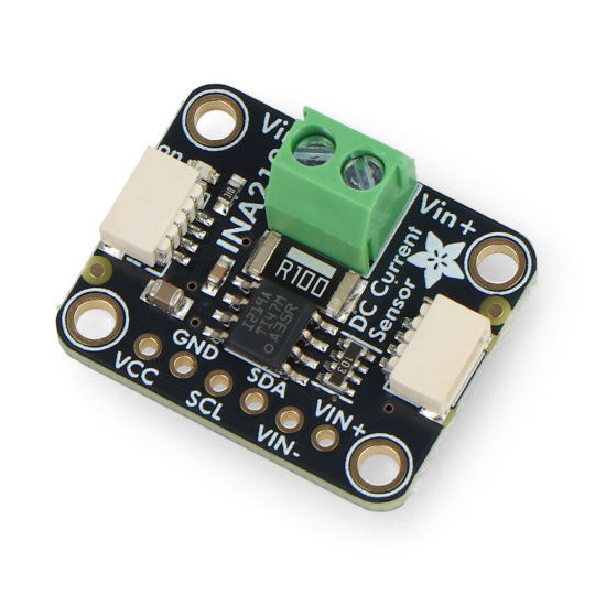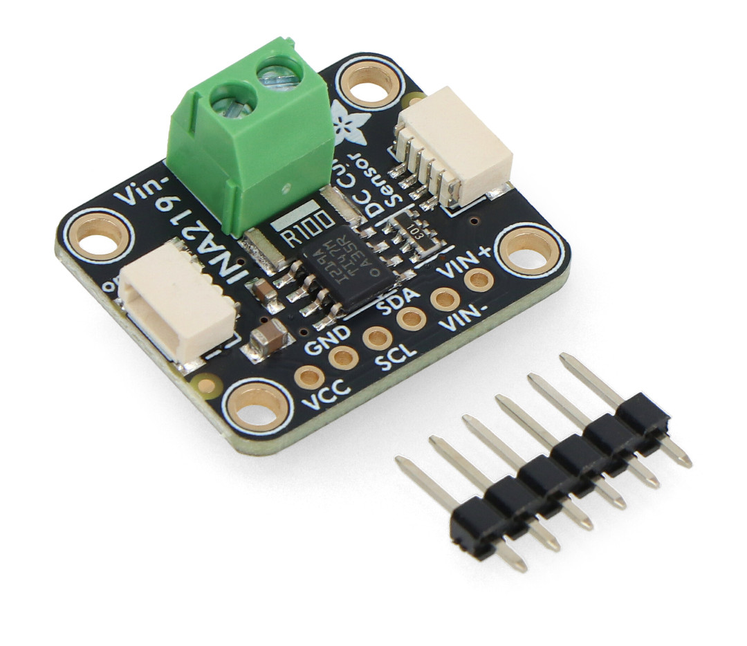 Obousměrný snímač proudu a výkonu vyráběný společností Adafruit . Má vestavěný čip INA219 , dva konektory STEMMA QT / Qwiic umístěné na obou stranách desky a výstupy ve formě pájecích podložek. Používá se k měření vysokého napětí a stejnosměrného proudu přes sběrnici I2C s přesností na 1%. Čidlo může měřit maximální napětí 0V až 26V DC (navzdory zdroji napájení 3V nebo 5V). Zesilovač měří napětí na odporu 0,1 Ohm. Maximální vstupní rozdíl zesilovače je +/- 320 mV, což umožňuje měřit proudy až do +/- 3,2 A. U 12bitového ADC je rozlišení měření 0,8 A.