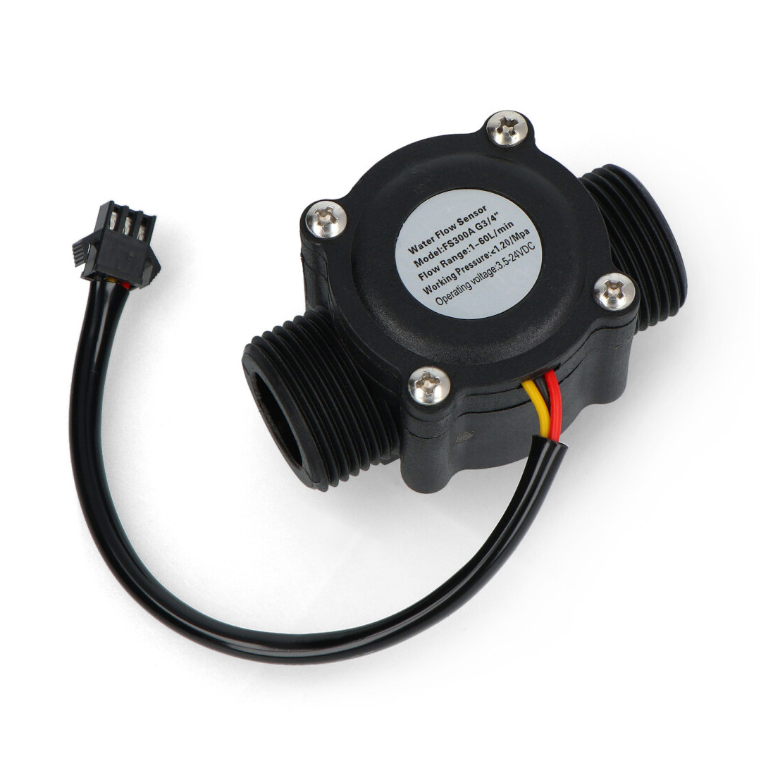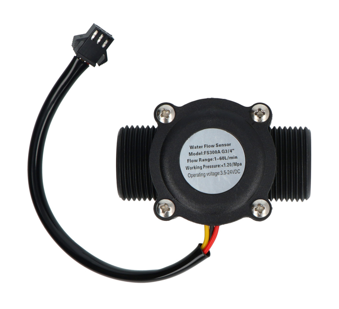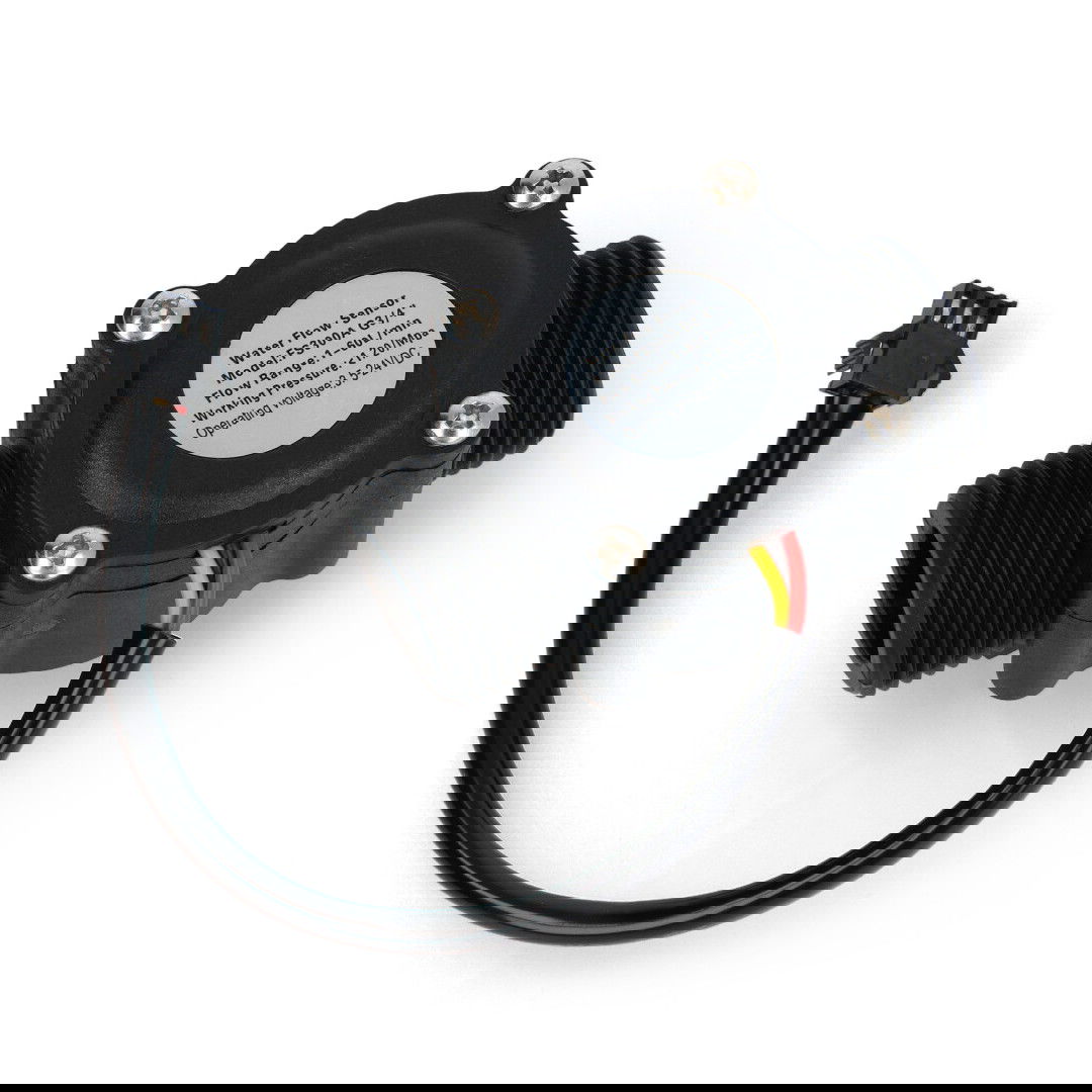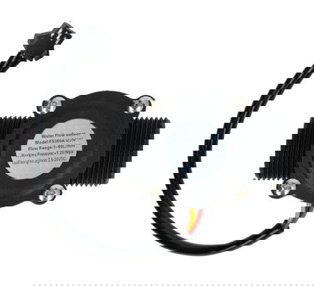 Jednoduchý senzor pro měření průtoku kapaliny. Skládá se z ventilátoru s magnetem a Hallových senzorů. Počítáním impulsů z rotujícího ventilátoru lze snadno měřit průtok kapaliny. Díky této metodě elektronika senzoru nepřichází do kontaktu s vodou.