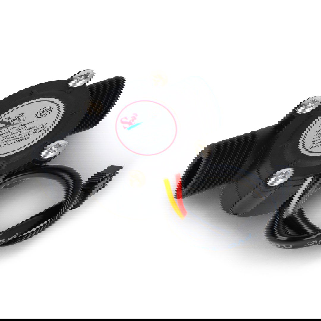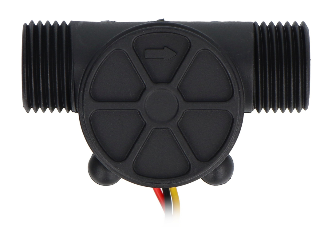 Jednoduchý senzor pro měření průtoku kapaliny. Skládá se z ventilátoru s magnetem a Hallových senzorů. Počítáním impulsů z rotujícího ventilátoru lze snadno měřit průtok kapaliny. Díky této metodě elektronika senzoru nepřichází do kontaktu s vodou.