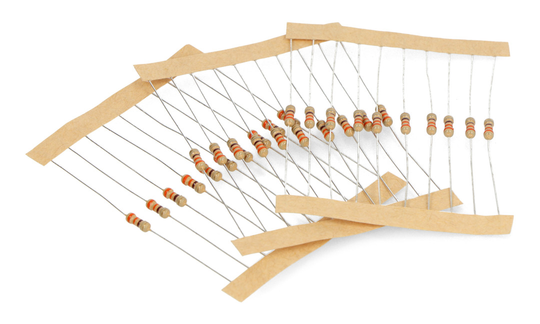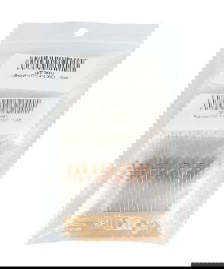 - Jmenovitý odpor: 330 Ω, což je běžně používaná hodnota mimo jiné pro omezení proudu v LED obvodech.